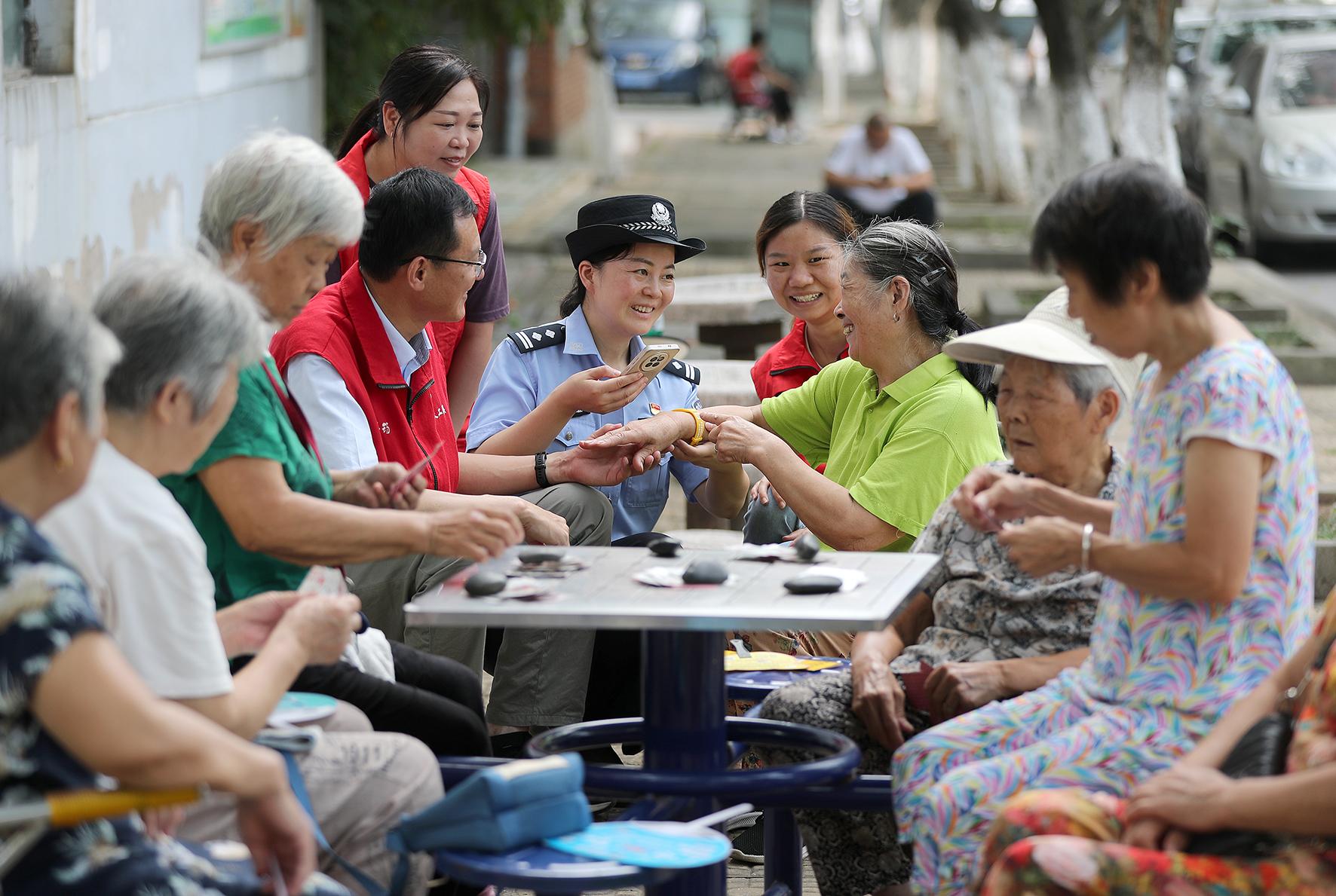 9月5日,湖北省荊門(mén)市公安局高新區(qū)·掇刀區(qū)分局白廟派出所民警在白廟街道長(zhǎng)源熱電社區(qū),為一位老人成功申領(lǐng)“黃手環(huán)”。