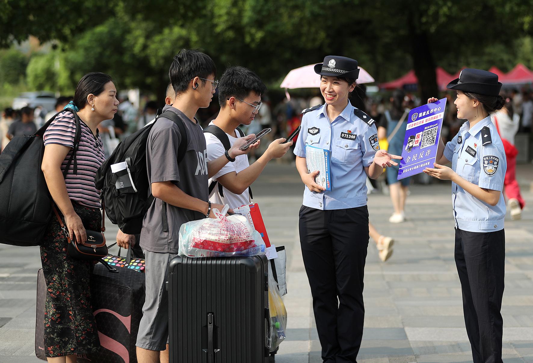 “你好,新同學(xué)!請掃碼下載國家反詐中心App……”9月6日,湖北省荊門市公安局東寶分局泉口派出所民警在荊楚理工學(xué)院新生報名點(diǎn),引導(dǎo)新生下載國家反詐中心App。