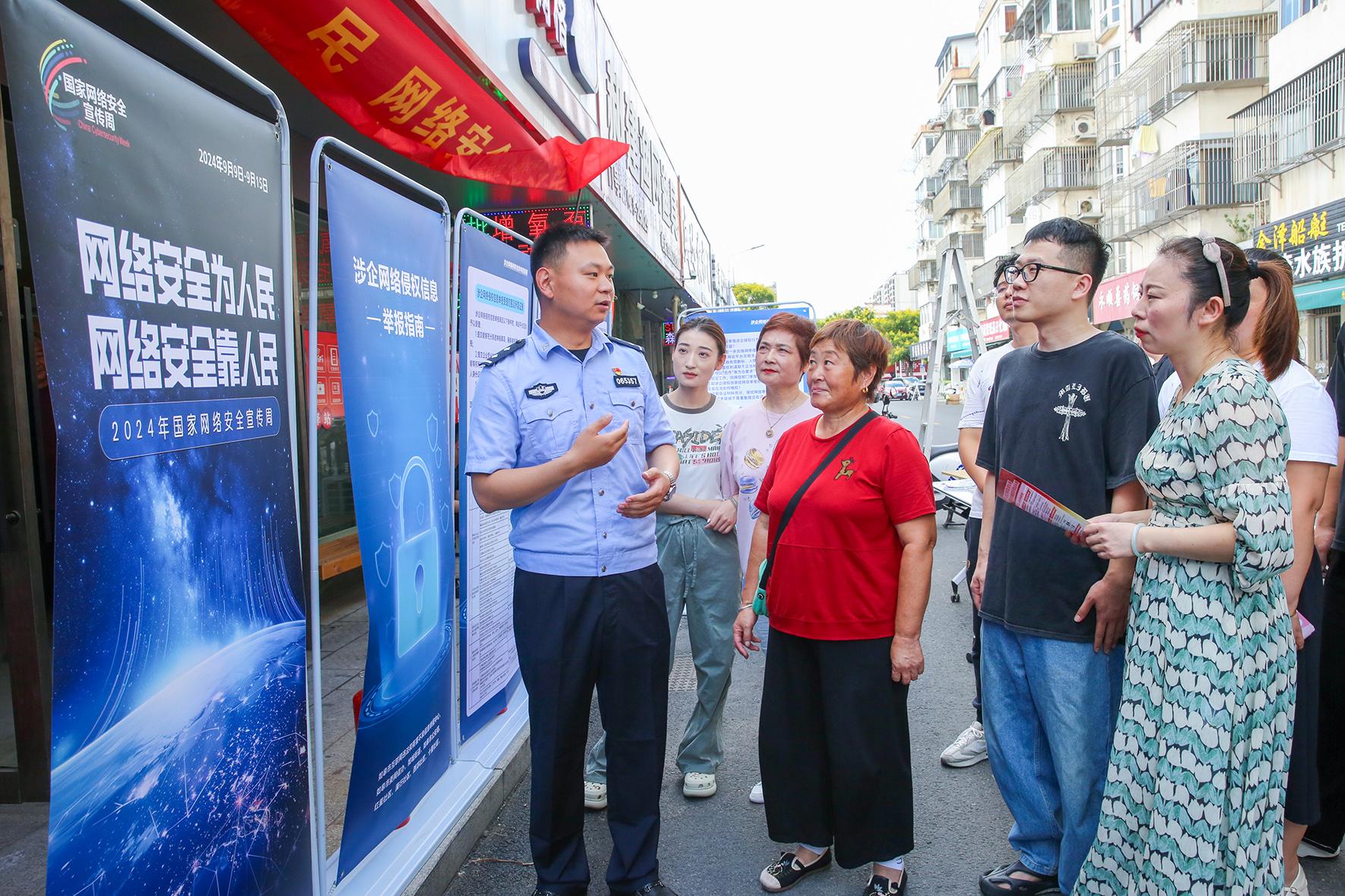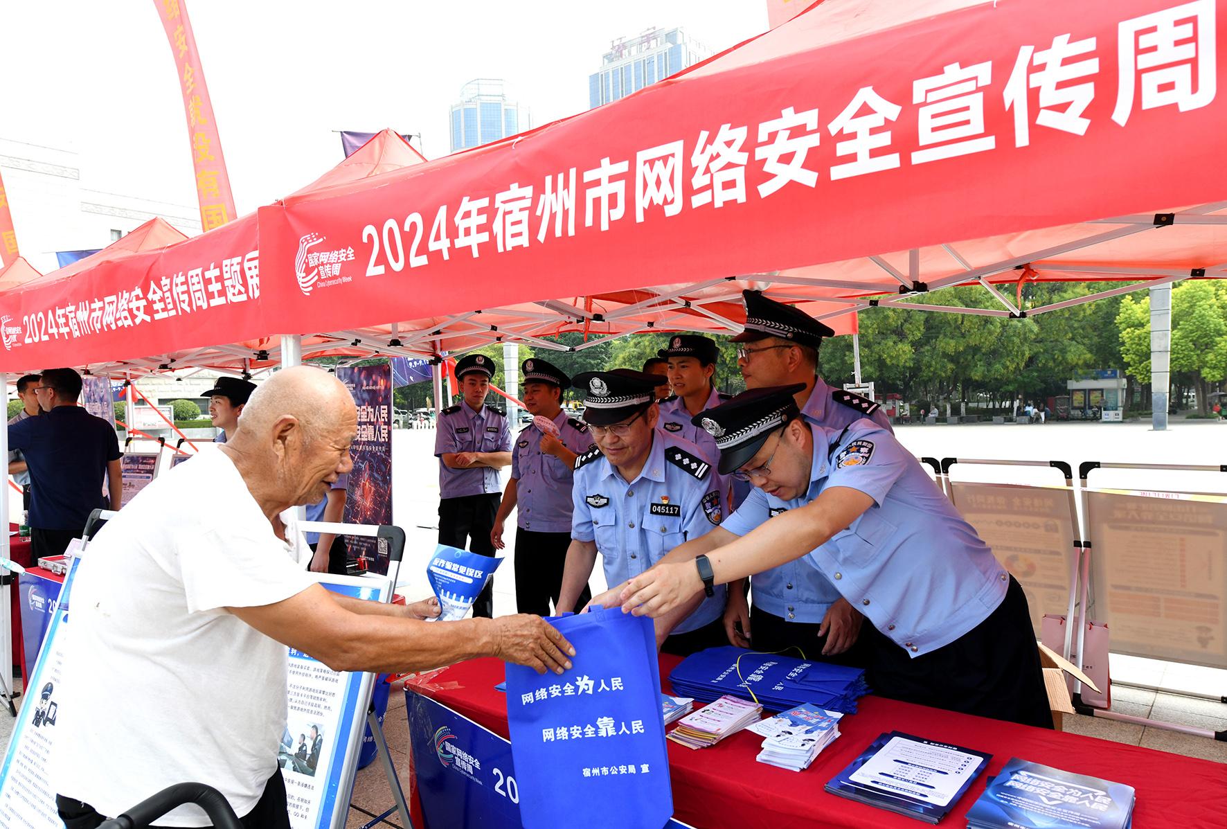 9月9日,安徽省宿州市公安局網(wǎng)安支隊(duì)民警向市民發(fā)放宣傳材料并講解網(wǎng)絡(luò)安全常識。當(dāng)日,2024年“國家網(wǎng)絡(luò)安全宣傳周”在全國各地同時啟動。