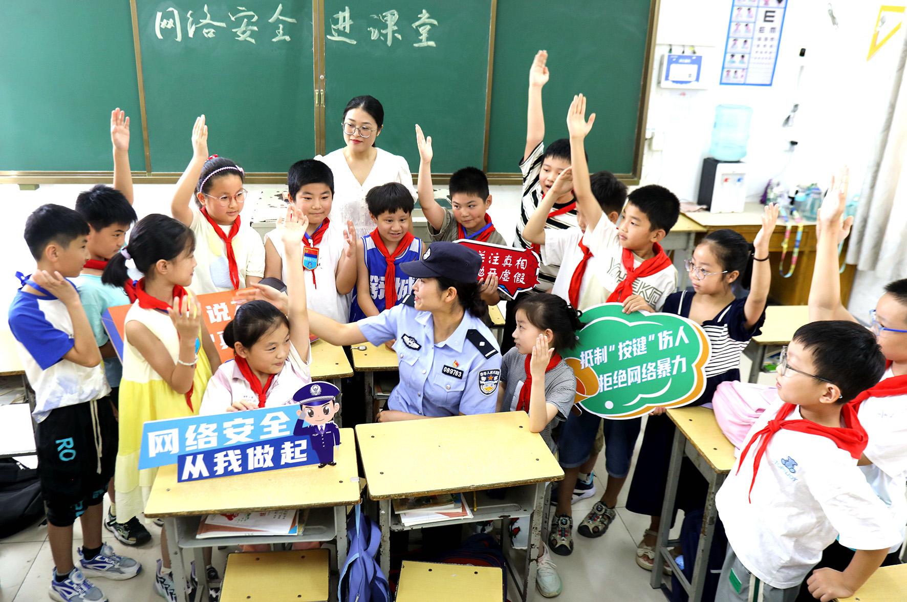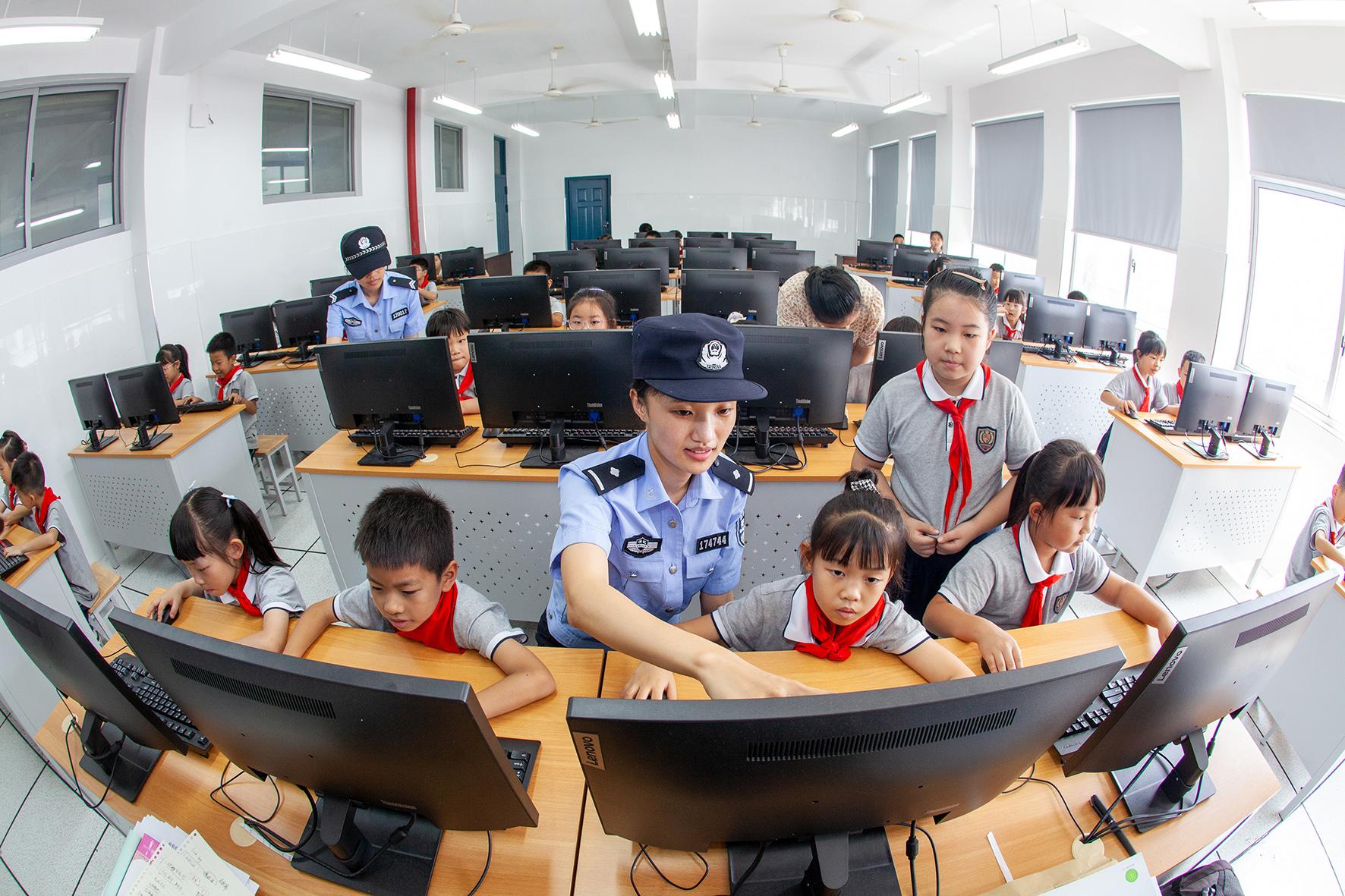 9月9日,浙江省臺州市公安局黃巖分局新前派出所民警來到轄區(qū)的小學(xué),給正在電腦教室上課的學(xué)生們講解網(wǎng)絡(luò)安全理念和相關(guān)法律知識。