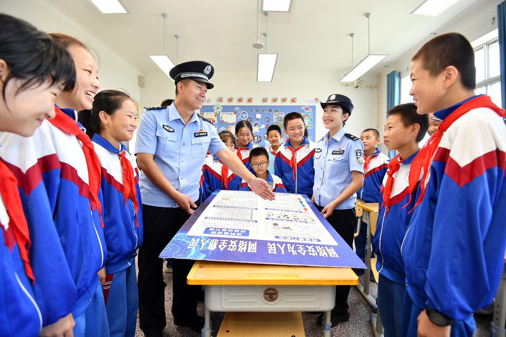 9月9日,上海市公安局崇明分局城橋派出所民警在轄區(qū)學(xué)校向同學(xué)們介紹網(wǎng)絡(luò)安全知識。