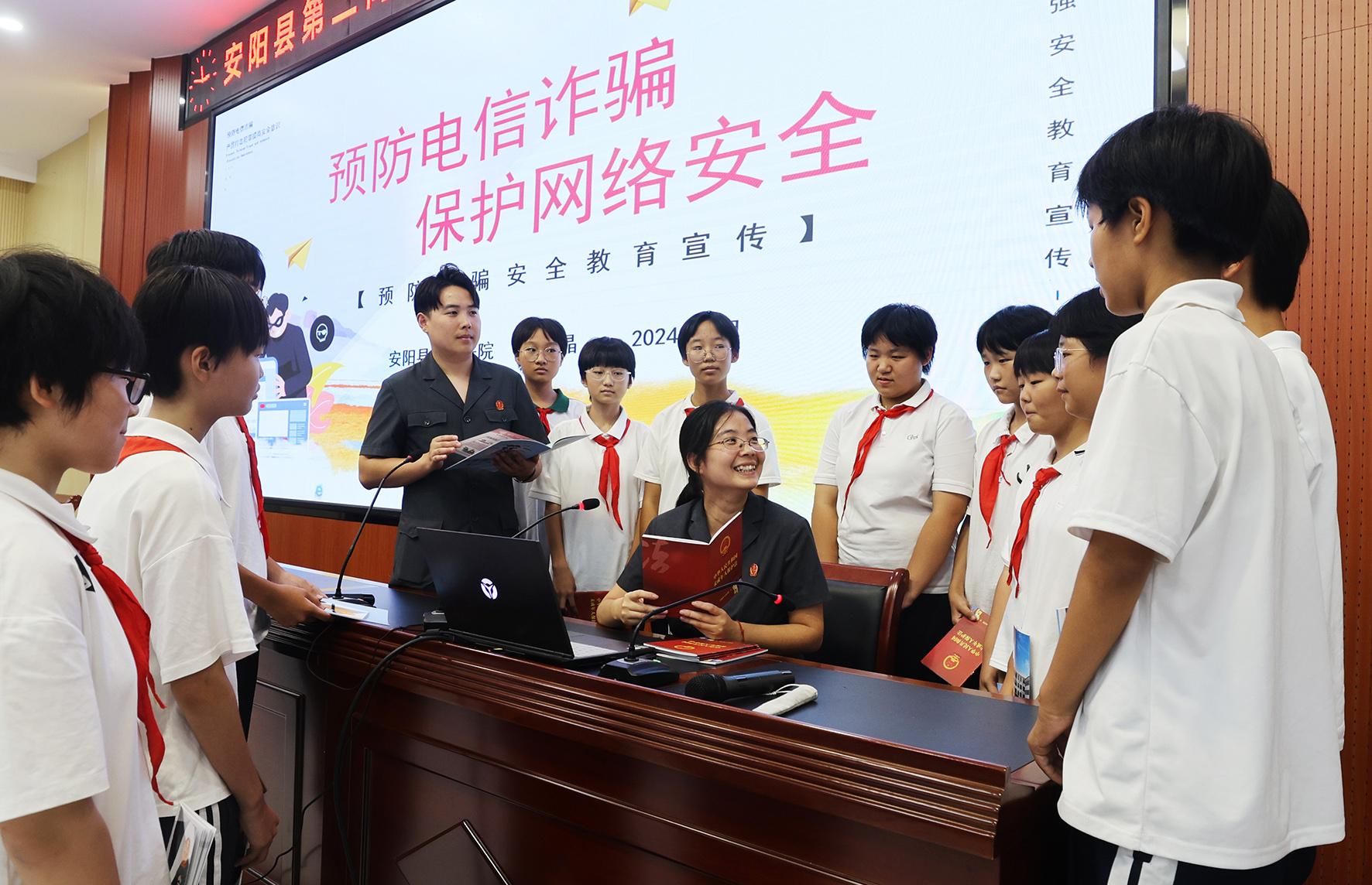 9月20日,河南省安陽縣人民法院組織法官深入第二高級中學附屬初中開展了以“預防電信詐騙、保護網(wǎng)絡安全”為主題的普法宣傳活動。