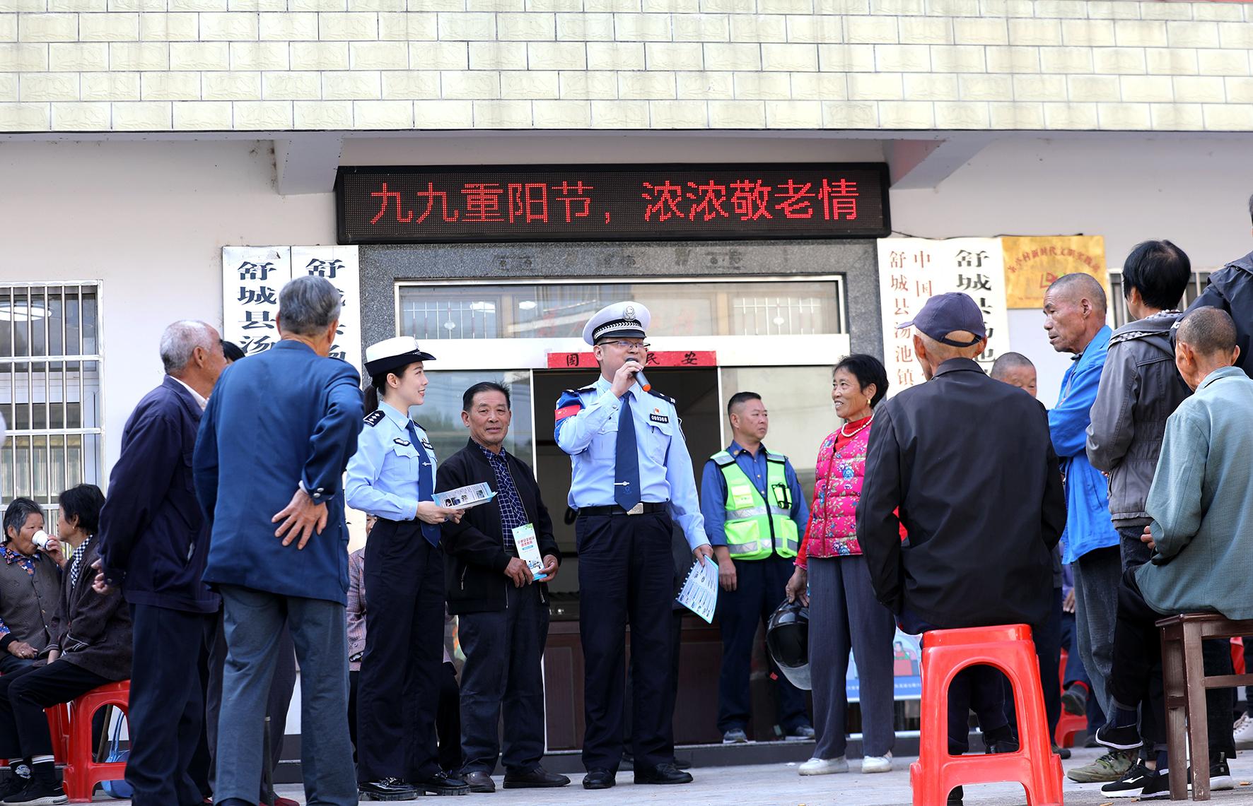 10月11日,安徽省六安市公安局交警支隊高速六大隊聯(lián)合舒城縣公安局交管大隊、湯池派出所等單位走進(jìn)湯池鎮(zhèn)茶亭村,開展“九九重陽 久久安康——護(hù)老行動暨交通安全宣傳進(jìn)農(nóng)村”活動。