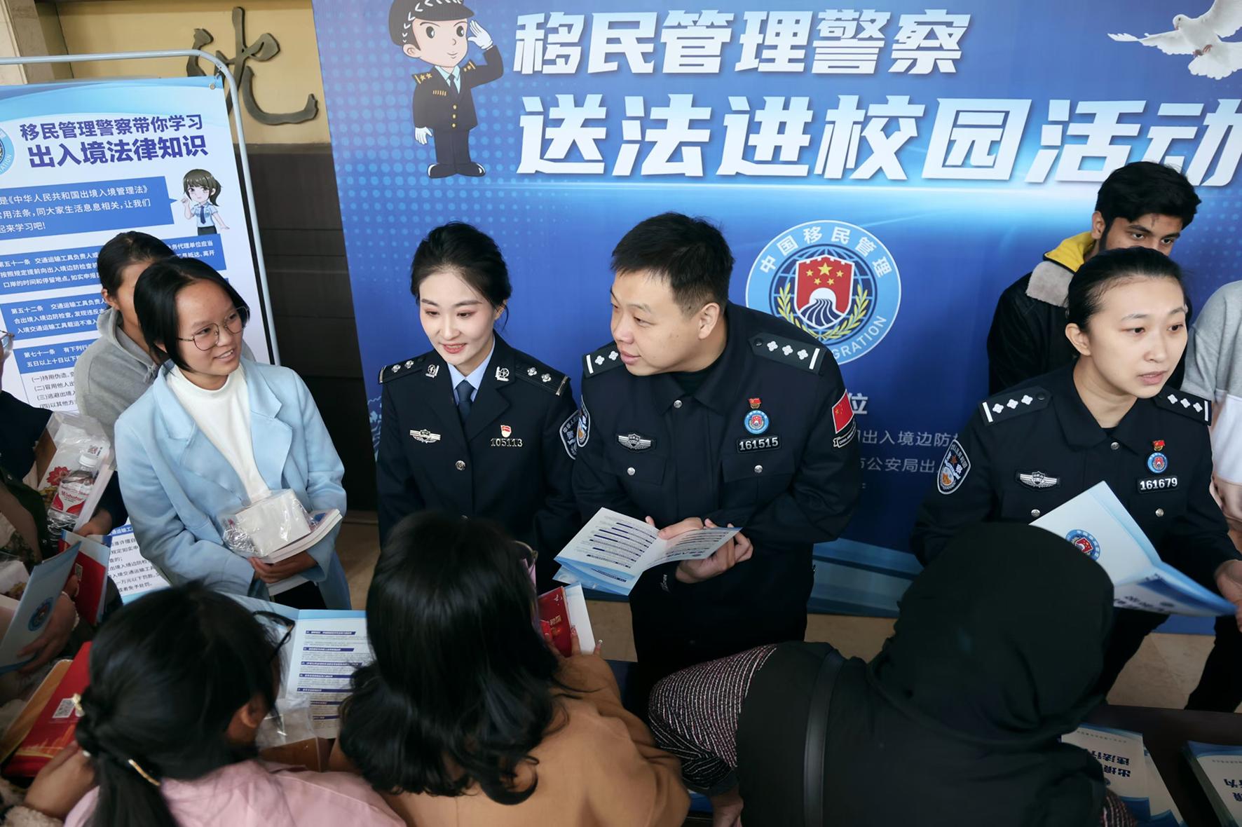 10月11日,遼寧出入境邊防檢查站聯(lián)合遼寧省公安廳出入境管理局、遼寧省司法廳等單位,在沈陽醫(yī)學(xué)院開展“移民管理警察送法進(jìn)校園”活動(dòng)。