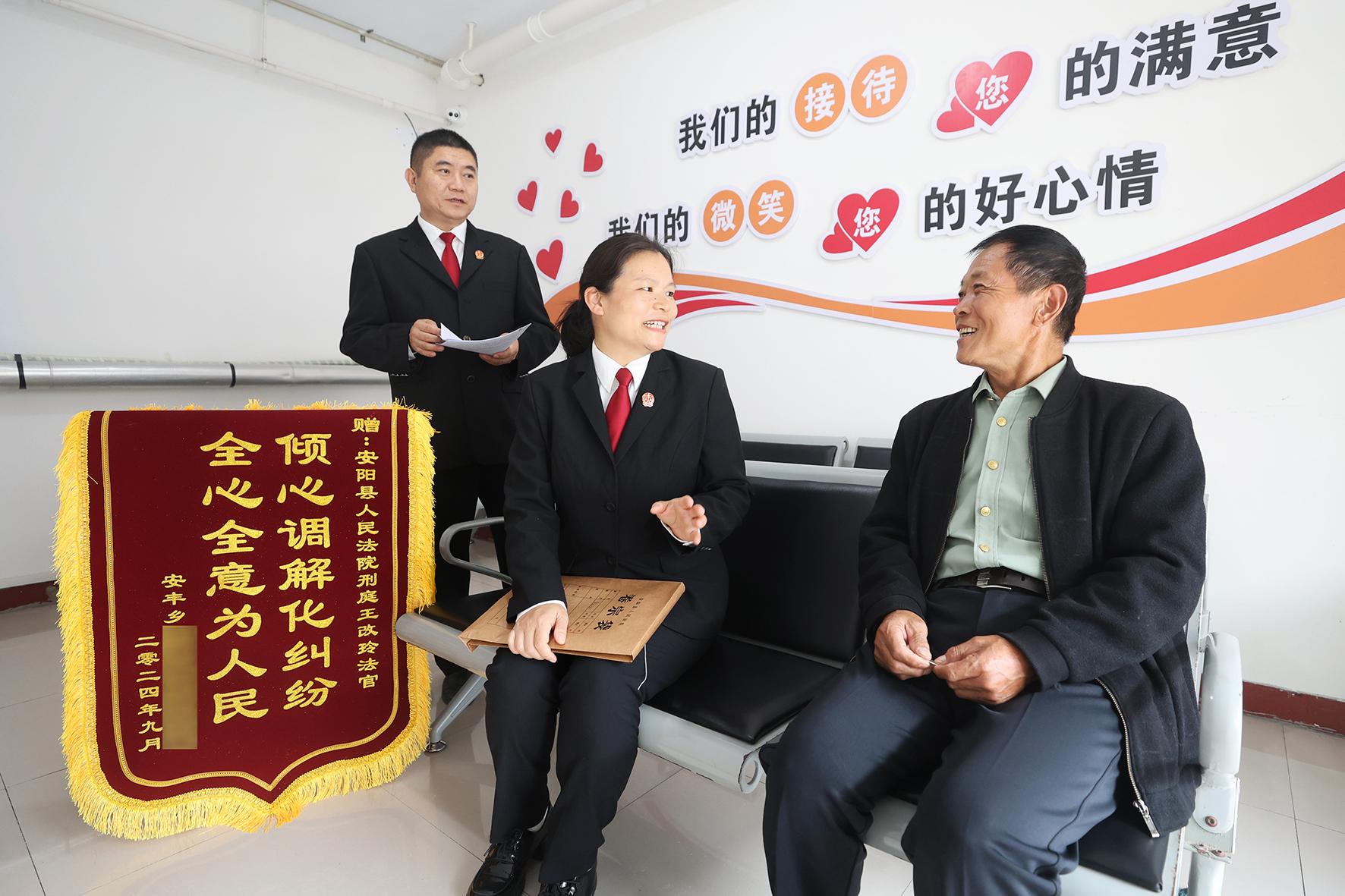 10月14日,當事人專程將一面錦旗送到了河南省安陽縣人民法院刑事審判庭法官手中,以表達對法官用心辦案、高效解紛的誠摯感謝。