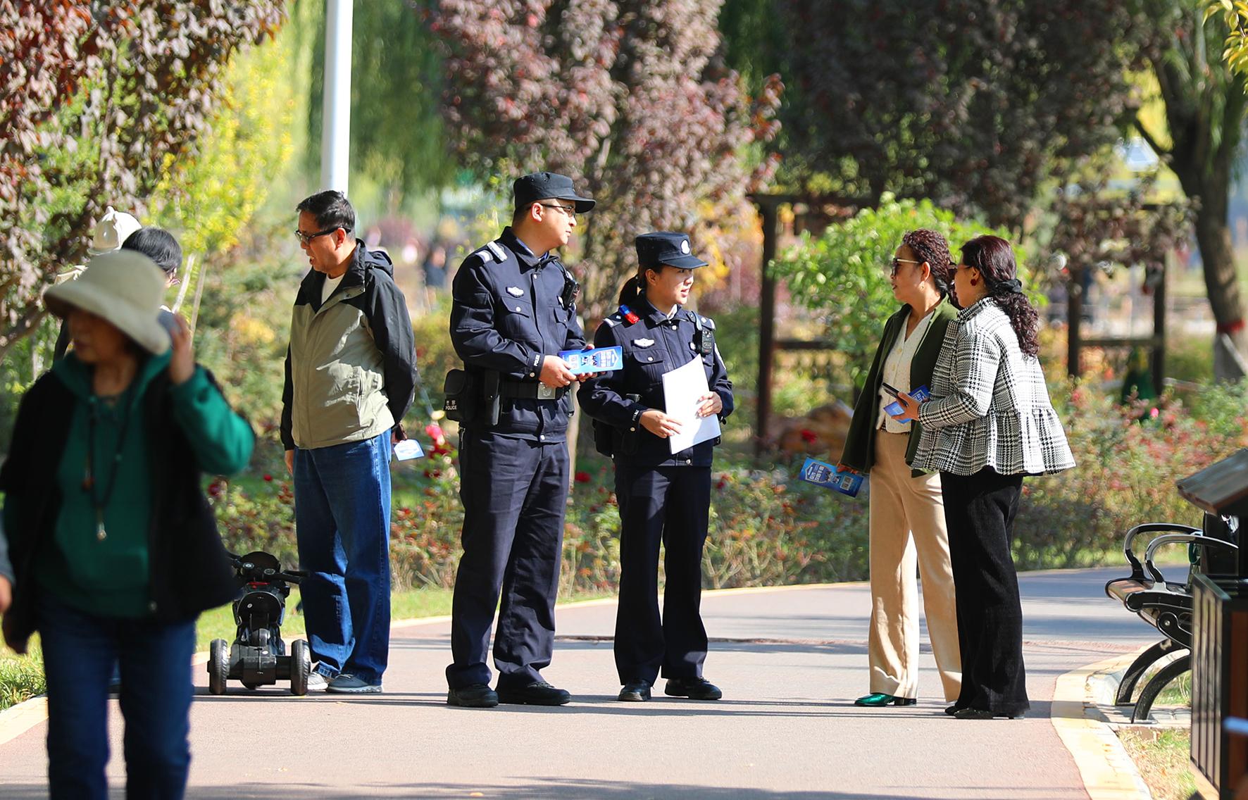 10月24日,甘肅省蘭州市公安局城關(guān)分局鹽場(chǎng)路派出所組織民輔警走進(jìn)轄區(qū)公園開(kāi)展防電詐宣傳,增強(qiáng)居民安全防范意識(shí)和能力。