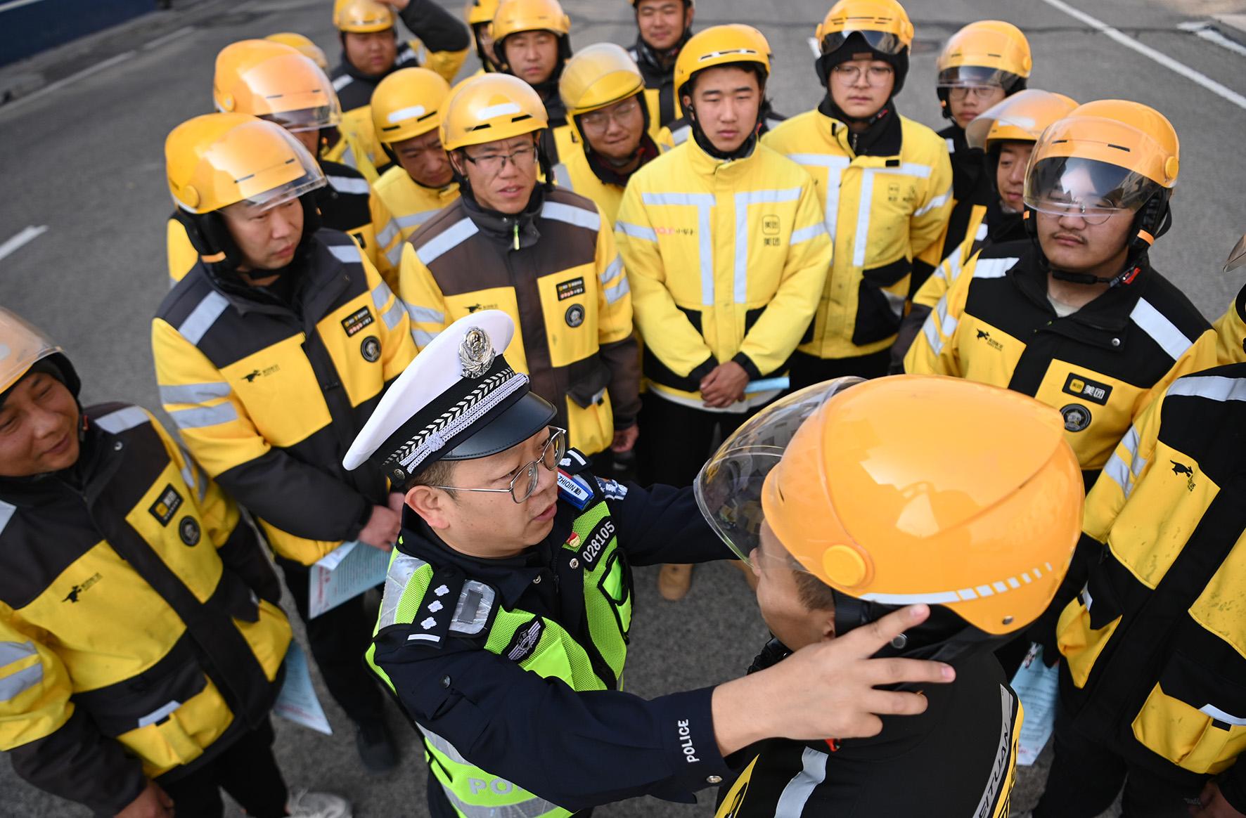 11月8日,山西省大同市廣靈縣公安局交通警察大隊(duì)民警對從事外賣送餐的駕駛?cè)诉M(jìn)行交通安全知識培訓(xùn)。