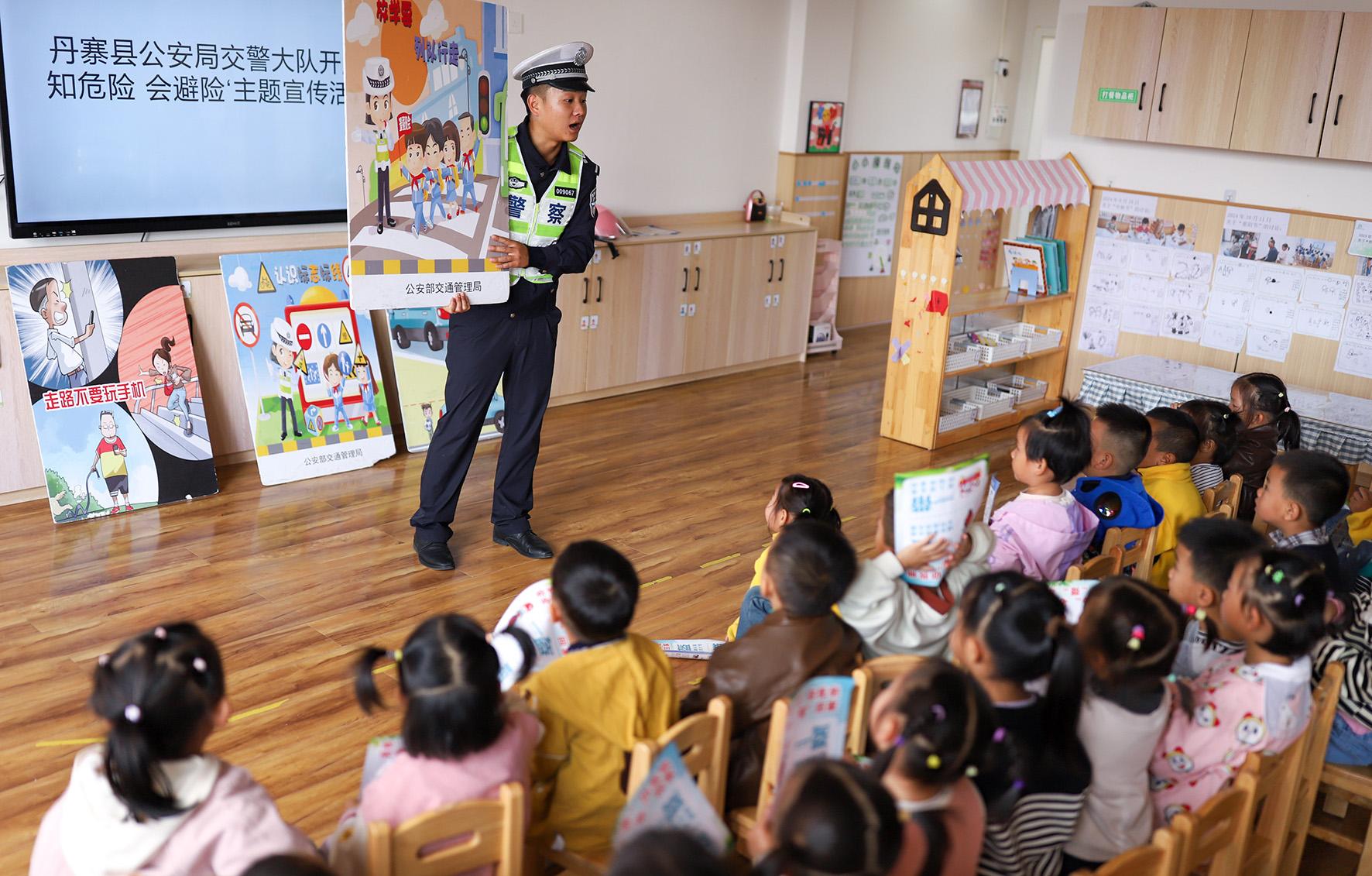 11月12日,貴州省丹寨縣公安局交警大隊(duì)民警走進(jìn)第四幼兒園開展交通安全宣傳活動。