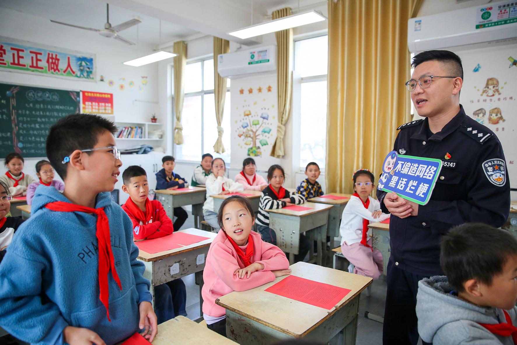 11月12日,由江蘇省如皋市委網(wǎng)信辦、教育局、公安局共同開展的“清朗·規(guī)范網(wǎng)絡(luò)語言文字使用”專項教育課走進下原鎮(zhèn)花園小學。
