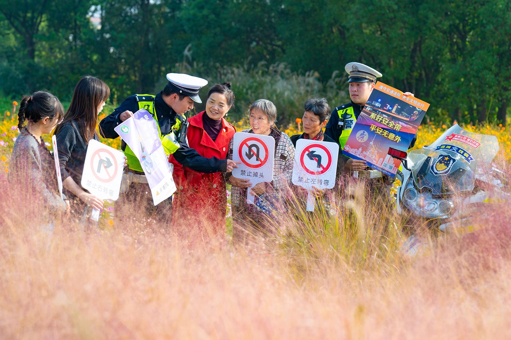11月13日,上海市公安局崇明分局交警支隊(duì)民警來(lái)到新城公園,向賞花打卡的游客開(kāi)展了一場(chǎng)交通安全宣傳活動(dòng)。