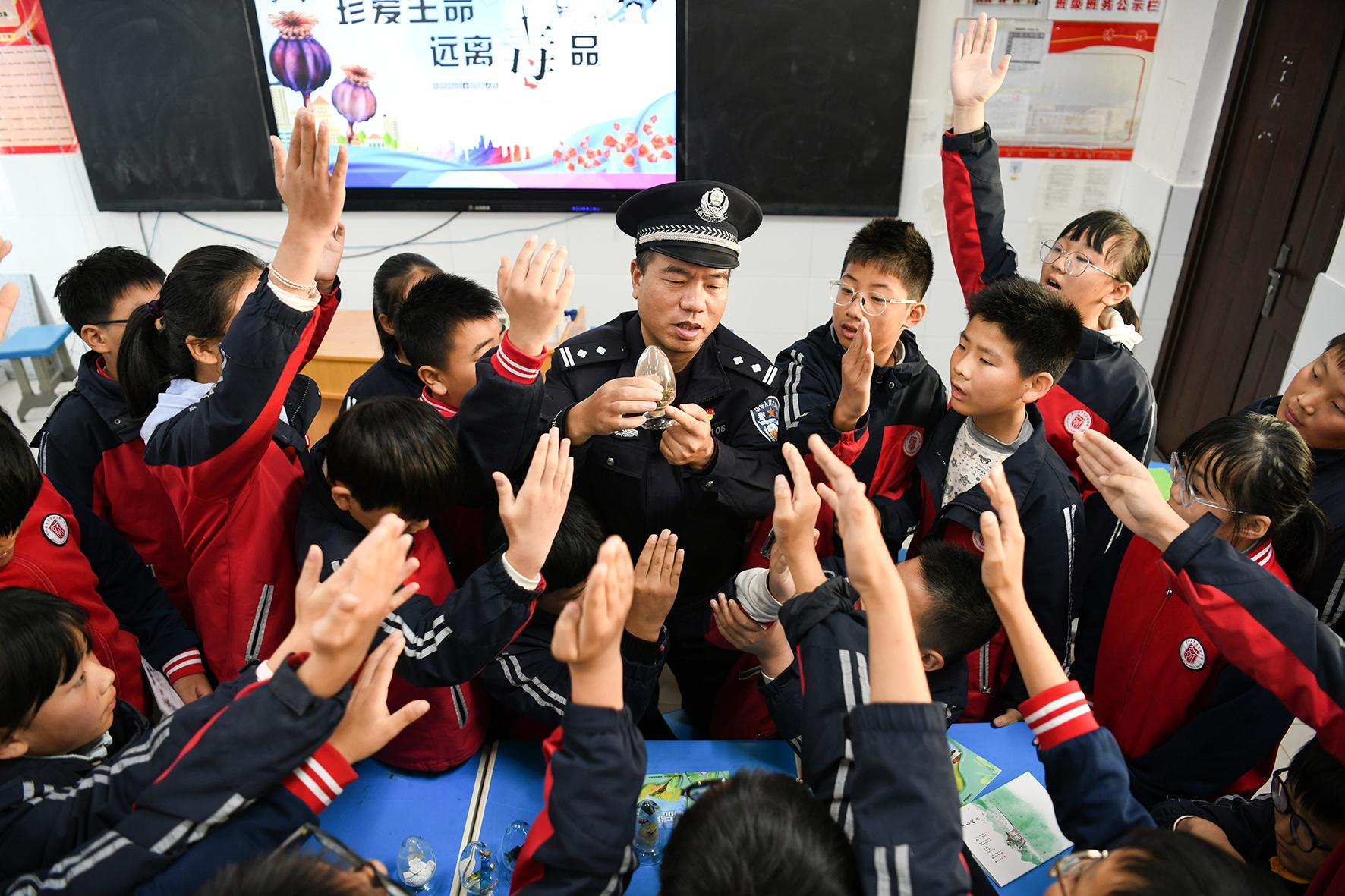 11月21日,安徽省含山縣公安局花山派出所組織民警開展禁毒宣傳進(jìn)校園活動(dòng),為青少年健康成長保駕護(hù)航。