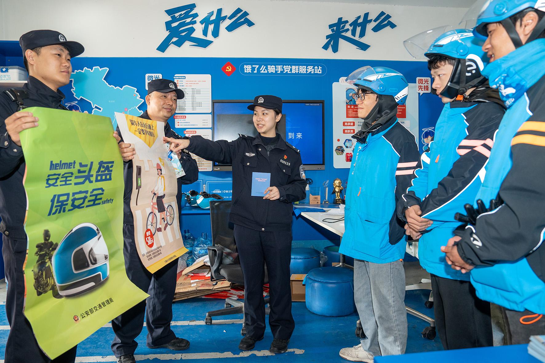 12月1日,安徽省蕪湖市公安局交警支隊弋江大隊民警走進安徽商貿(mào)職業(yè)技術(shù)學院,開展“文明交通 攜手共創(chuàng)”主題宣傳活動。