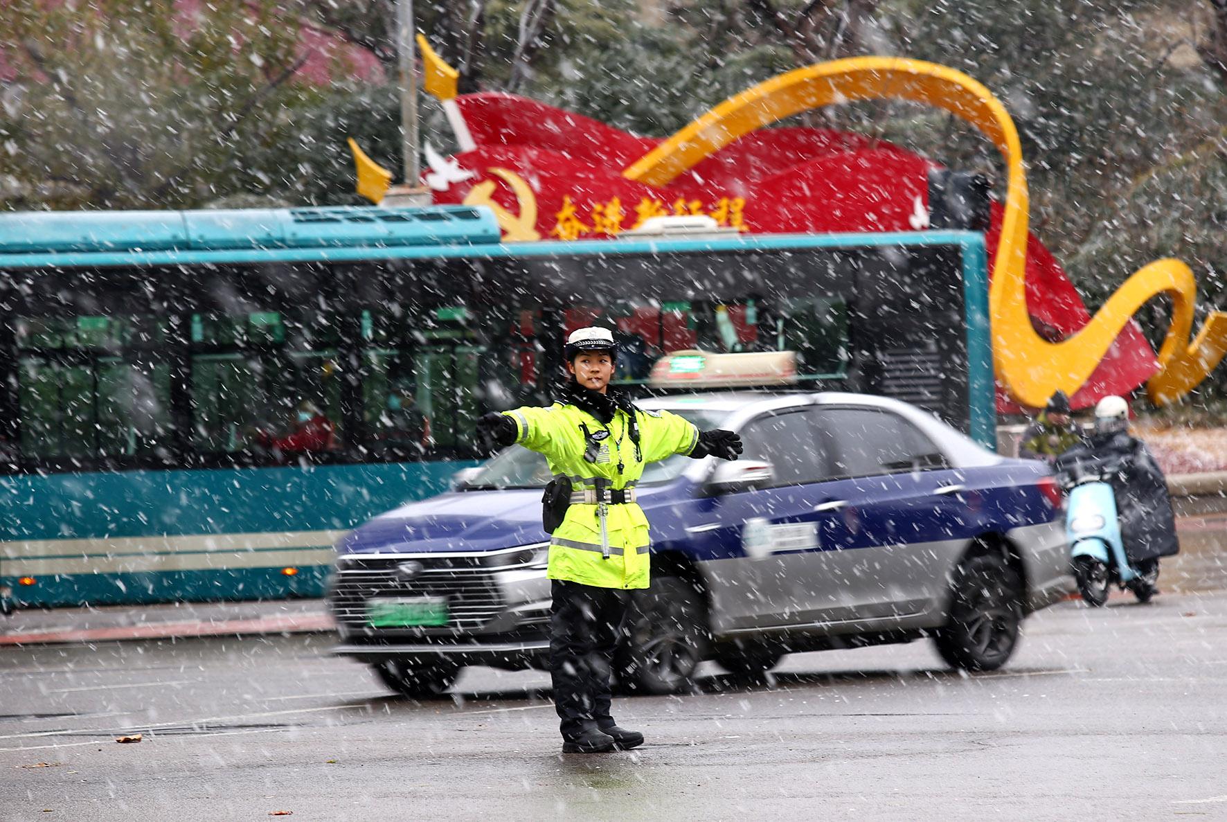 12月13日,山東省濟(jì)南市迎來降雪天氣。濟(jì)南市公安局交警支隊市中區(qū)大隊啟動惡劣天氣應(yīng)急預(yù)案,加大對重點路段、十字路口的交通疏導(dǎo)力度,為群眾安全出行保駕護(hù)航。