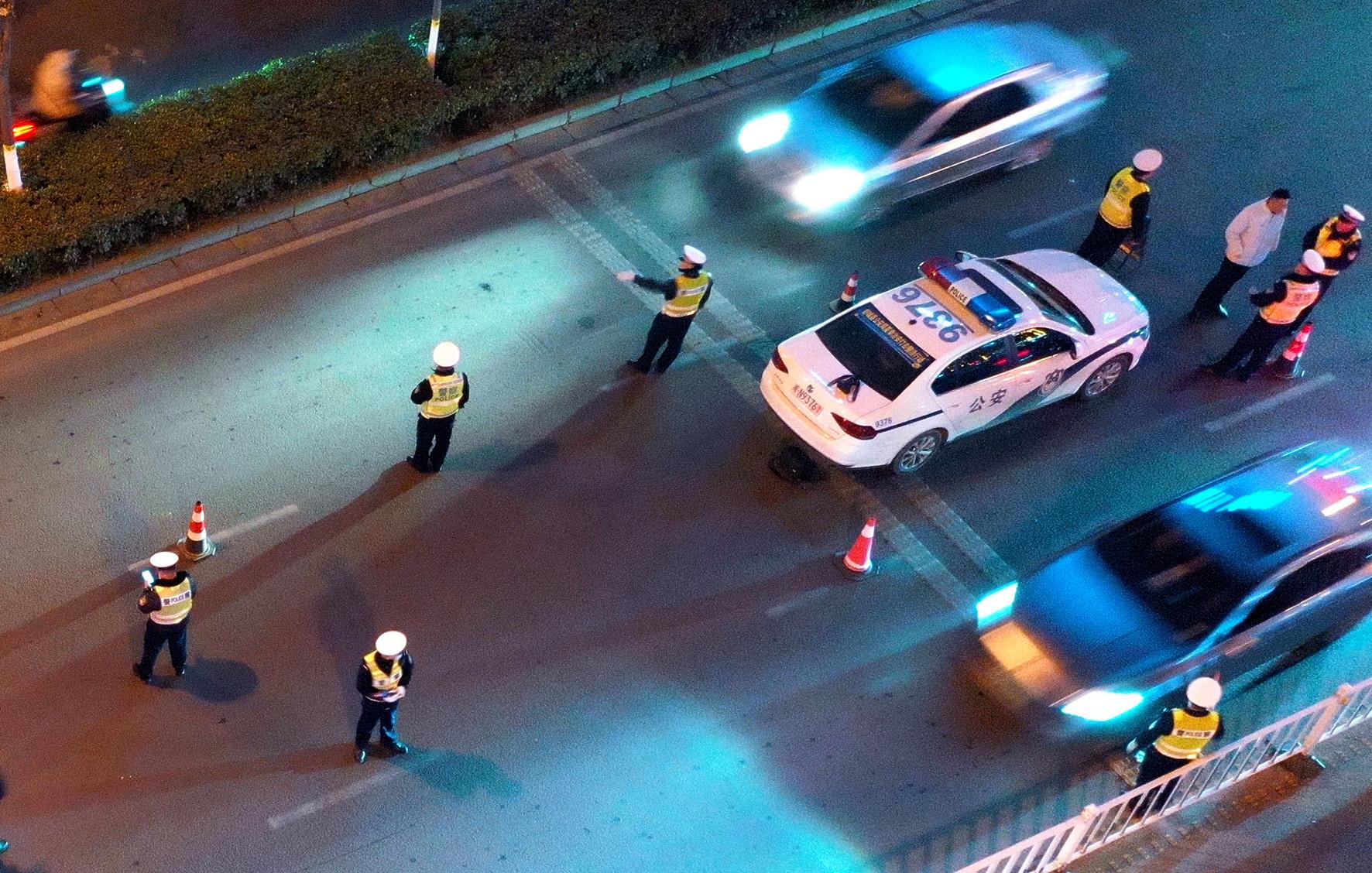 12月24日夜,安徽省舒城縣公安局交管大隊(duì)組織警力在縣城主干道集中開展夜查行動(dòng)。