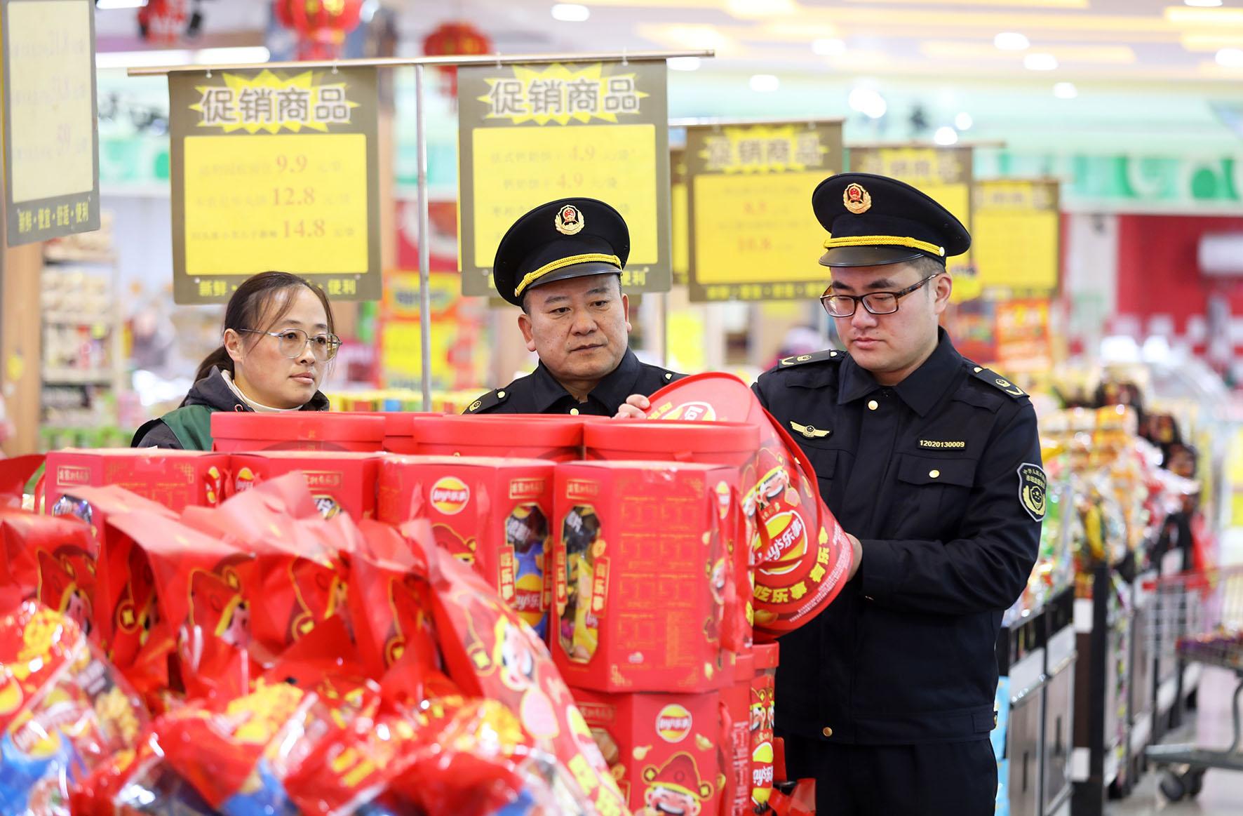 圖為雙堆集鎮(zhèn)市場(chǎng)監(jiān)督管理所工作人員在市場(chǎng)進(jìn)行檢查。