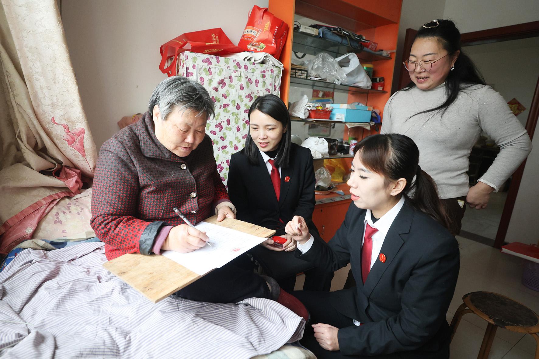 12月25日下午,河南省安陽縣人民法院干警冒著嚴寒來到高莊鎮(zhèn),上門為因交通事故受傷的魏老太辦理立案和委托手續(xù)。