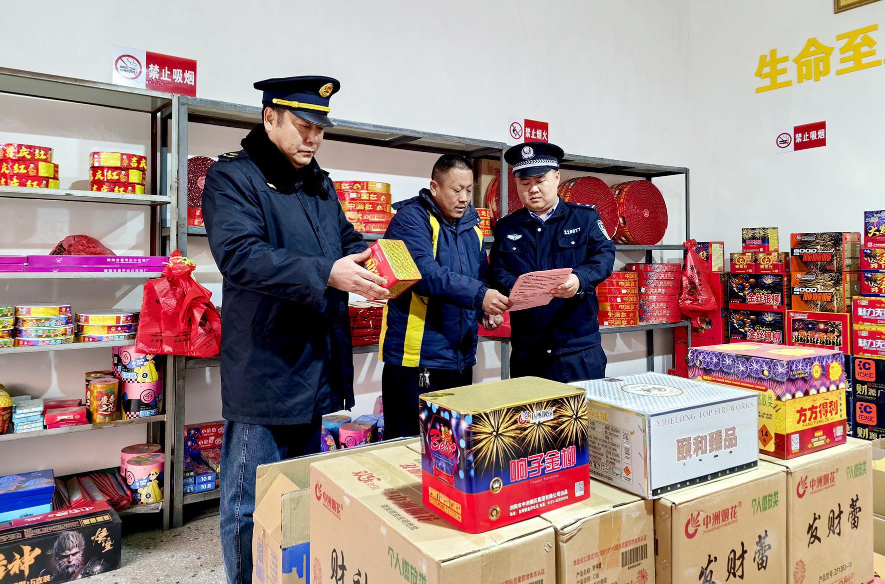 12月25日,山東省棗莊市公安局山亭分局北莊派出所民警和市場(chǎng)監(jiān)督管理人員對(duì)轄區(qū)煙花爆竹銷(xiāo)售點(diǎn)開(kāi)展安全檢查。