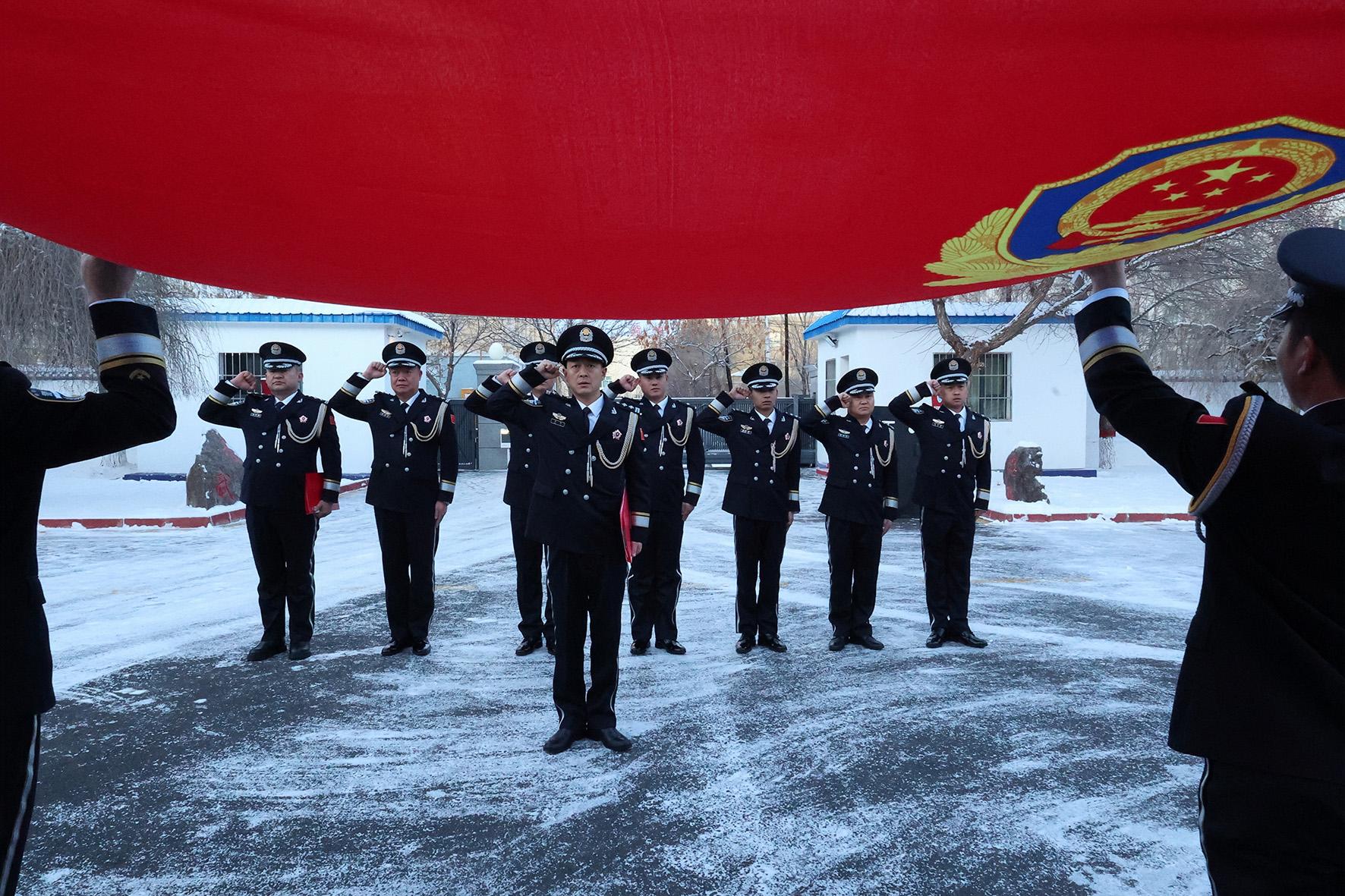 1月10日,新疆阿勒泰吉木乃邊境管理大隊(duì)舉行中國人民警察節(jié)升旗及宣誓儀式。