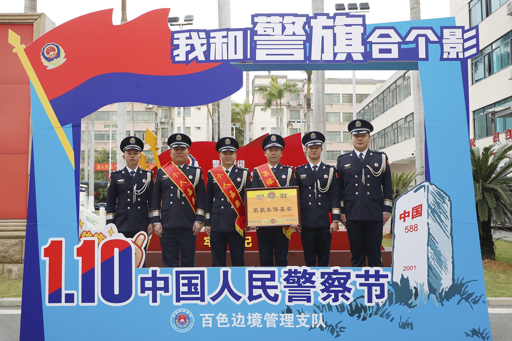 1月10日,廣西百色邊境管理支隊(duì)舉行警察節(jié)榮譽(yù)儀式,為立功受獎(jiǎng)的3個(gè)集體、18名民警、晉升警銜的46名民警代表頒發(fā)獎(jiǎng)?wù)?、證書。
