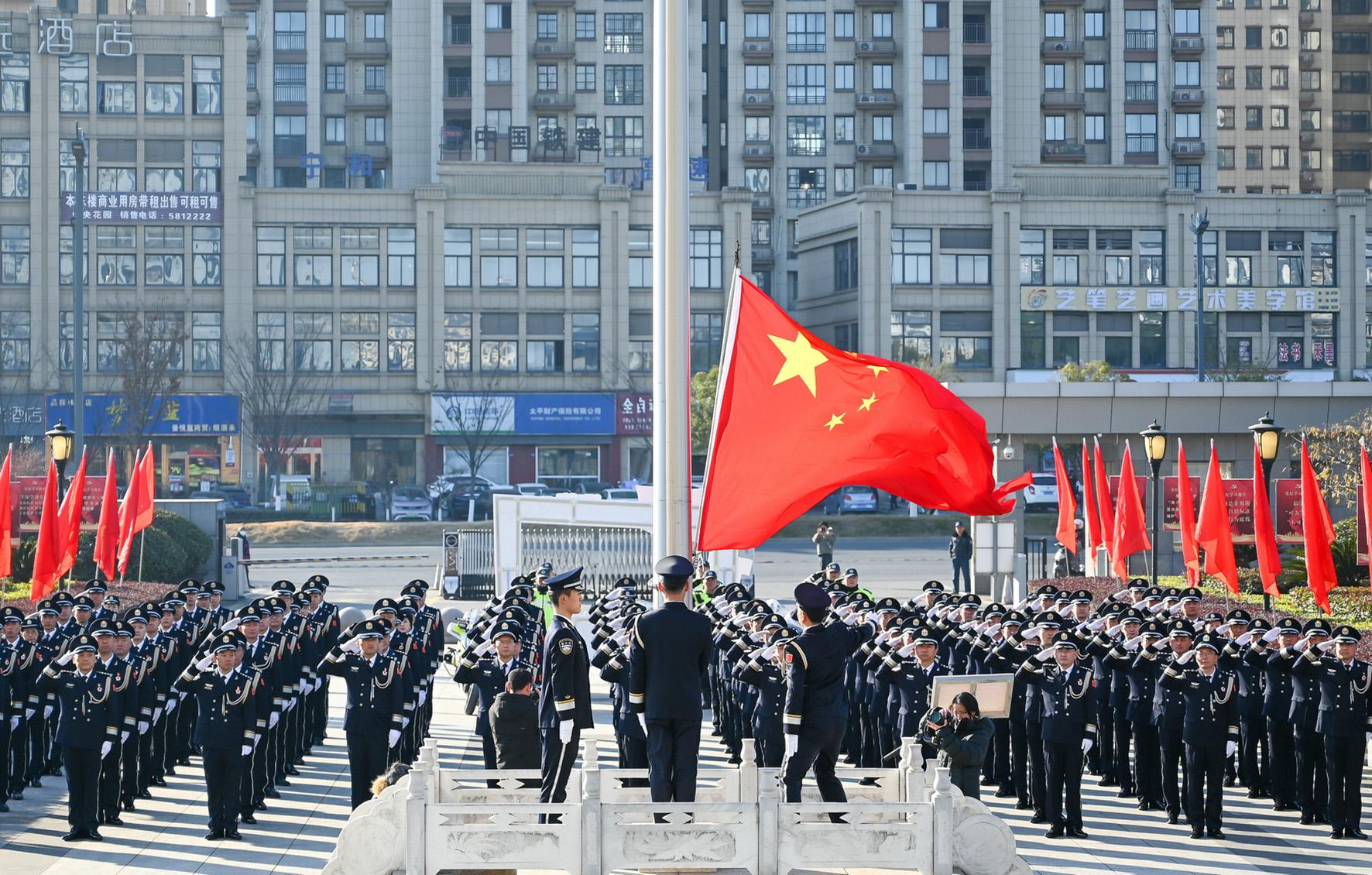 1月10日,安徽省巢湖市公安局組織開展升旗儀式暨授獎(jiǎng)榮譽(yù)儀式。