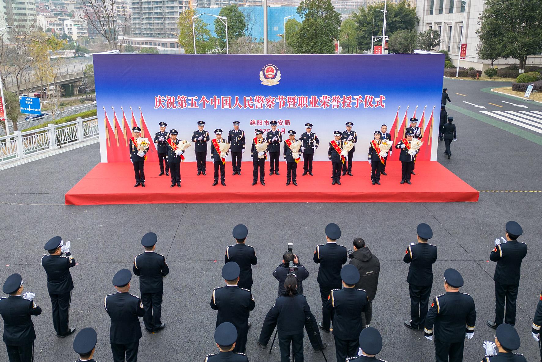 1月10日,四川省綿陽市舉行“升警旗 重溫入警誓詞”活動(dòng)及榮譽(yù)授予儀式,慶祝第五個(gè)中國人民警察節(jié)。