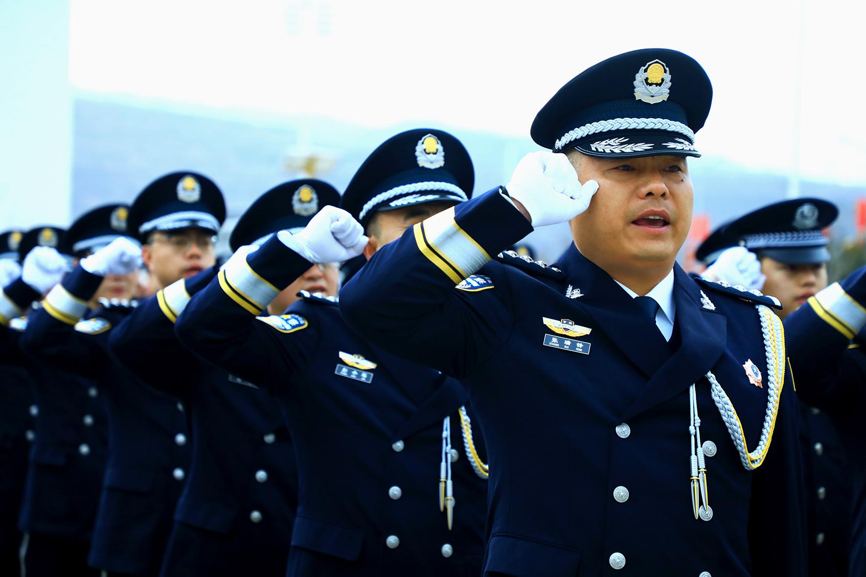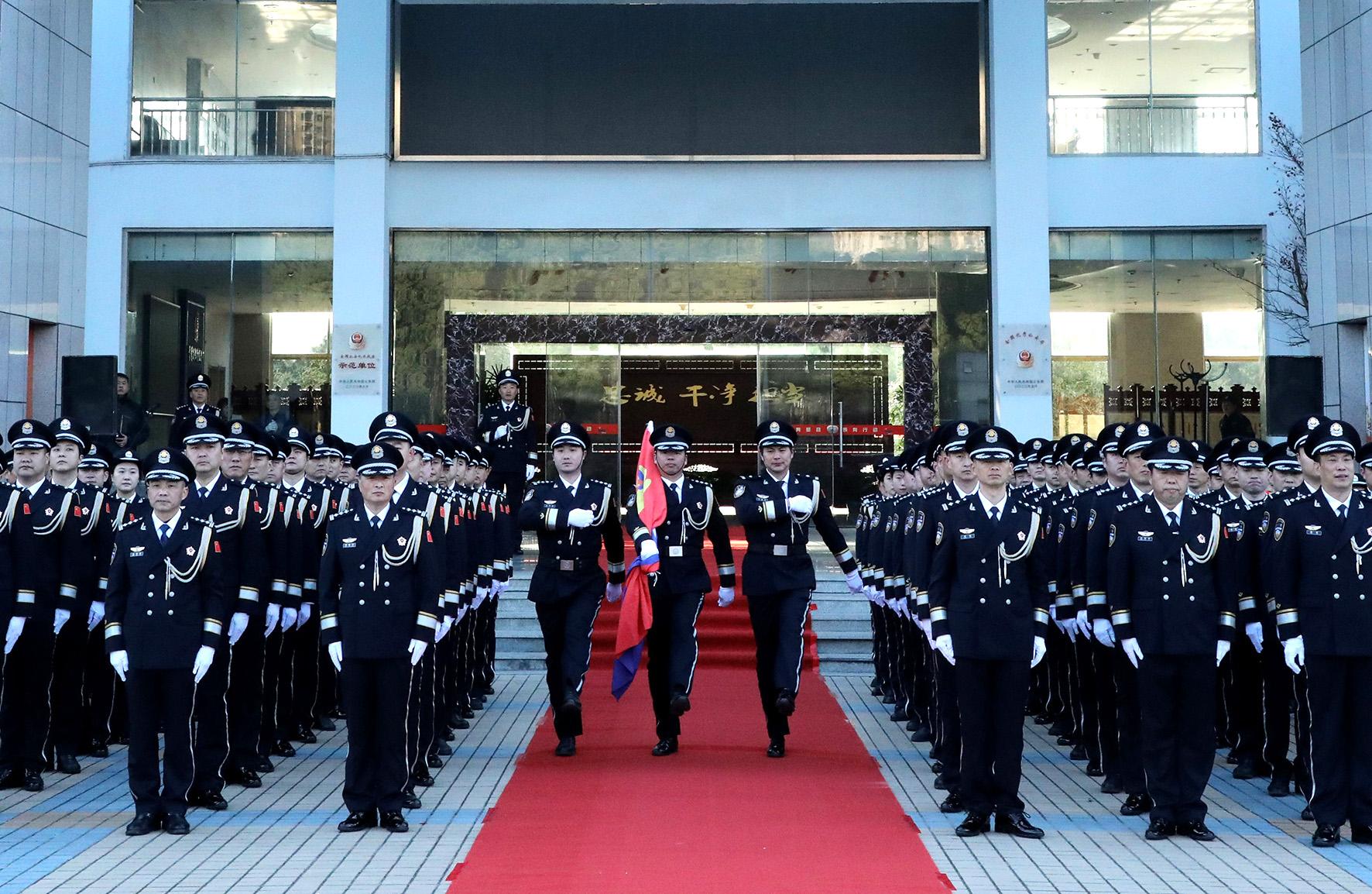 1月10日,貴州省赤水市公安局組織黨員民輔警舉行“奏警歌、升警旗暨公安機(jī)關(guān)人民警察誓詞宣誓儀式”活動(dòng),慶祝第五個(gè)中國人民警察節(jié)。