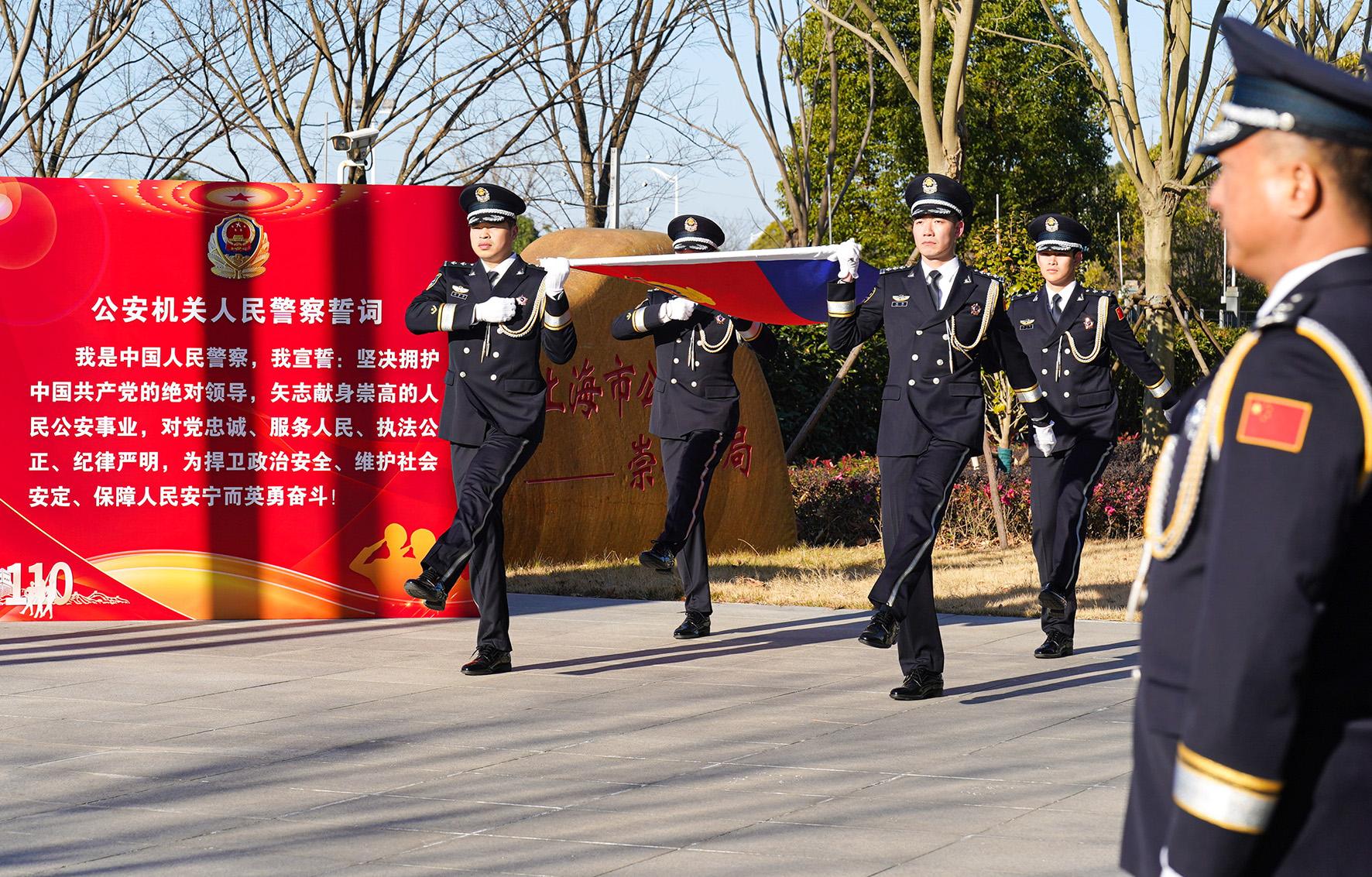 1月10日,為熱烈慶祝第五個(gè)中國人民警察節(jié),上海市公安局崇明分局舉行升警旗、重溫入警誓詞活動(dòng)。