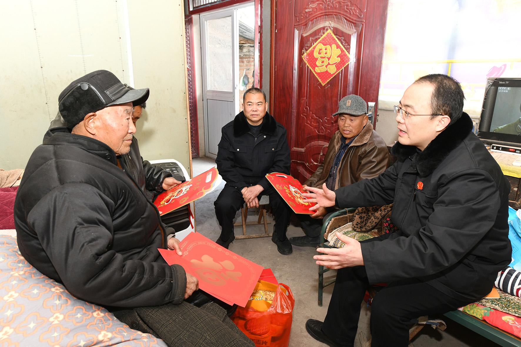 圖為1月15日,埇橋區(qū)人民法院夾溝法庭法官帶著新春禮物來到夾溝鎮(zhèn)黃山村西山頭一組,回訪、慰問因病在床的84歲老黨員陳文英。