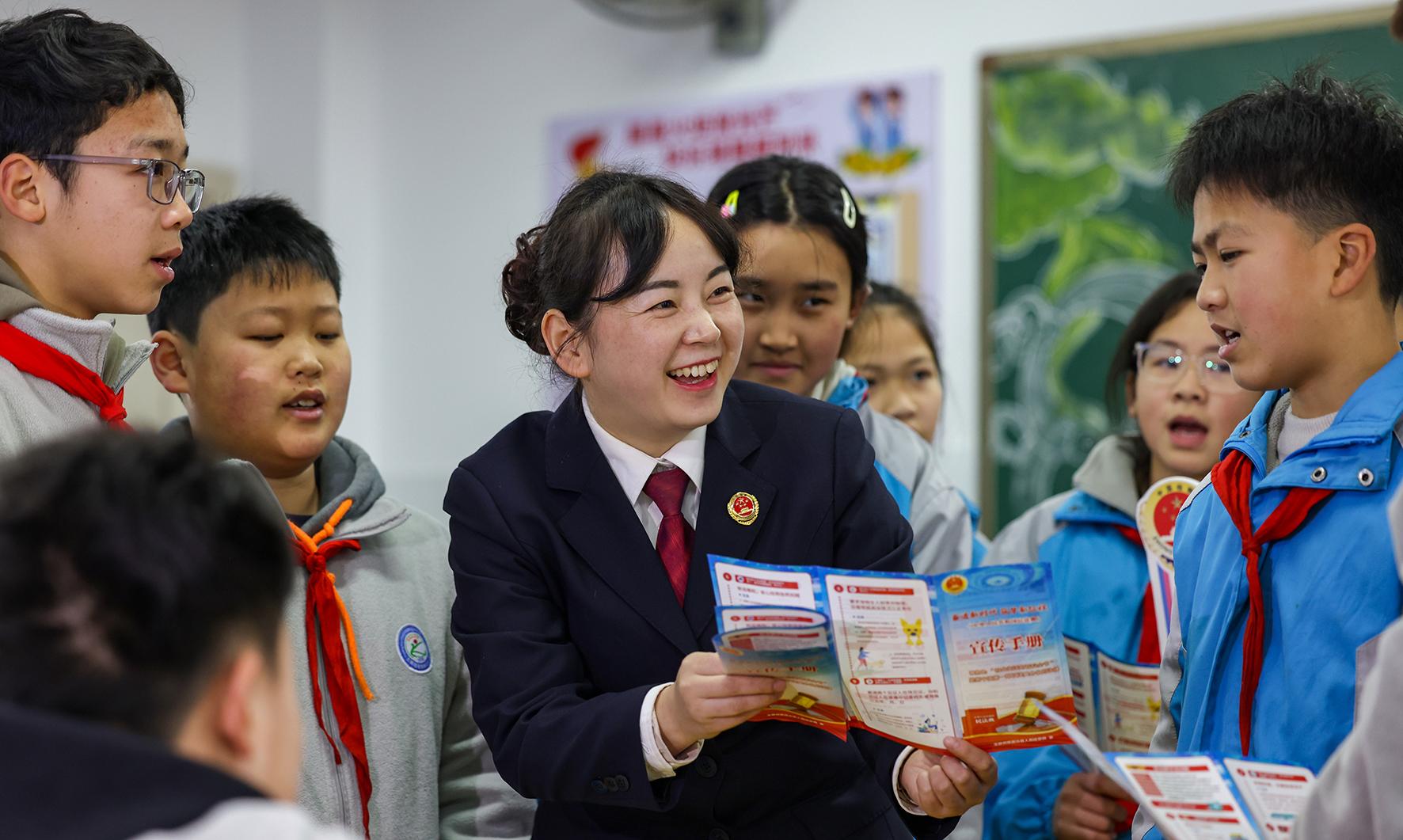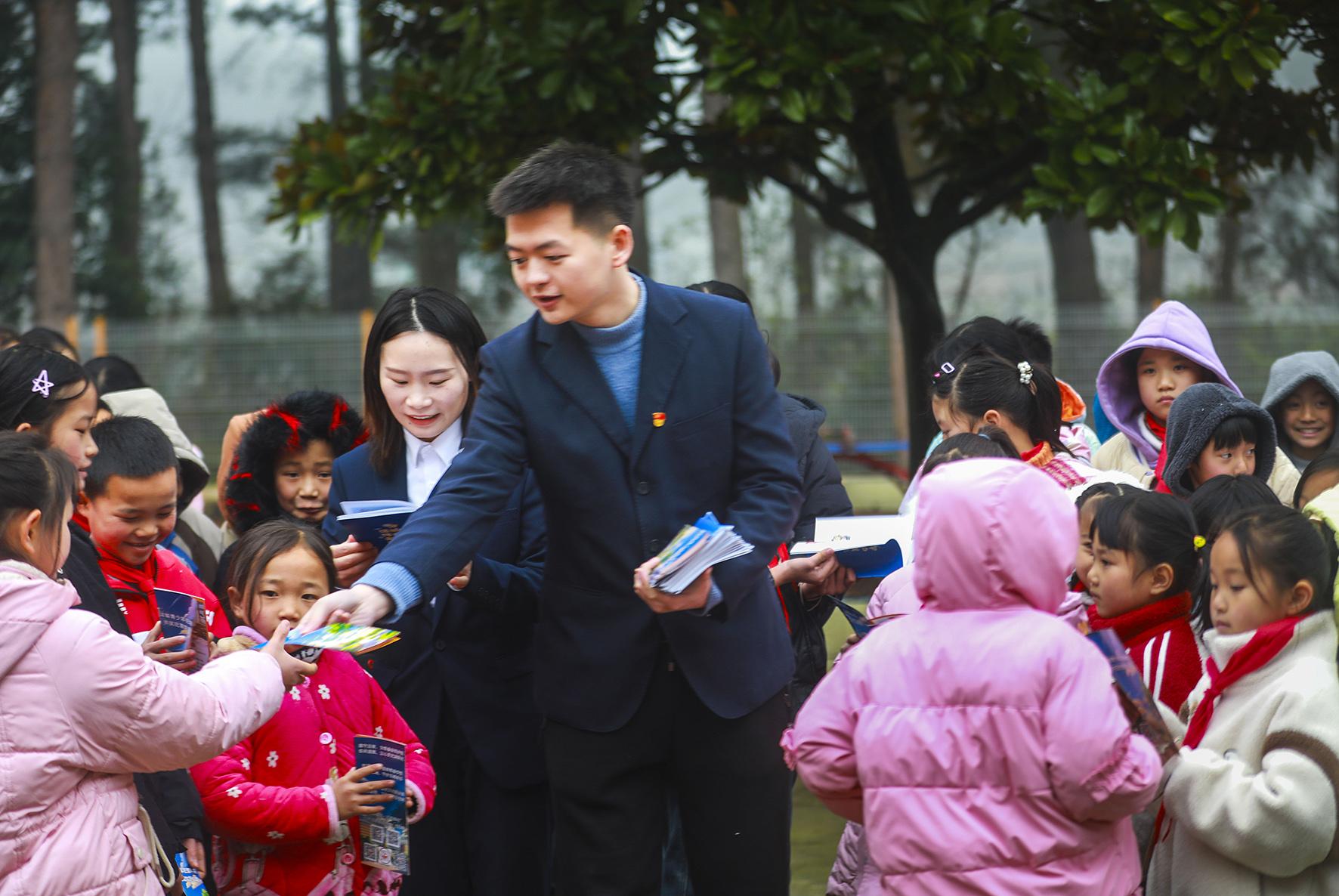 2月17日,在貴州省銅仁市玉屏侗族自治縣第四小學(xué),檢察干警給學(xué)生講解法律知識(shí)。
