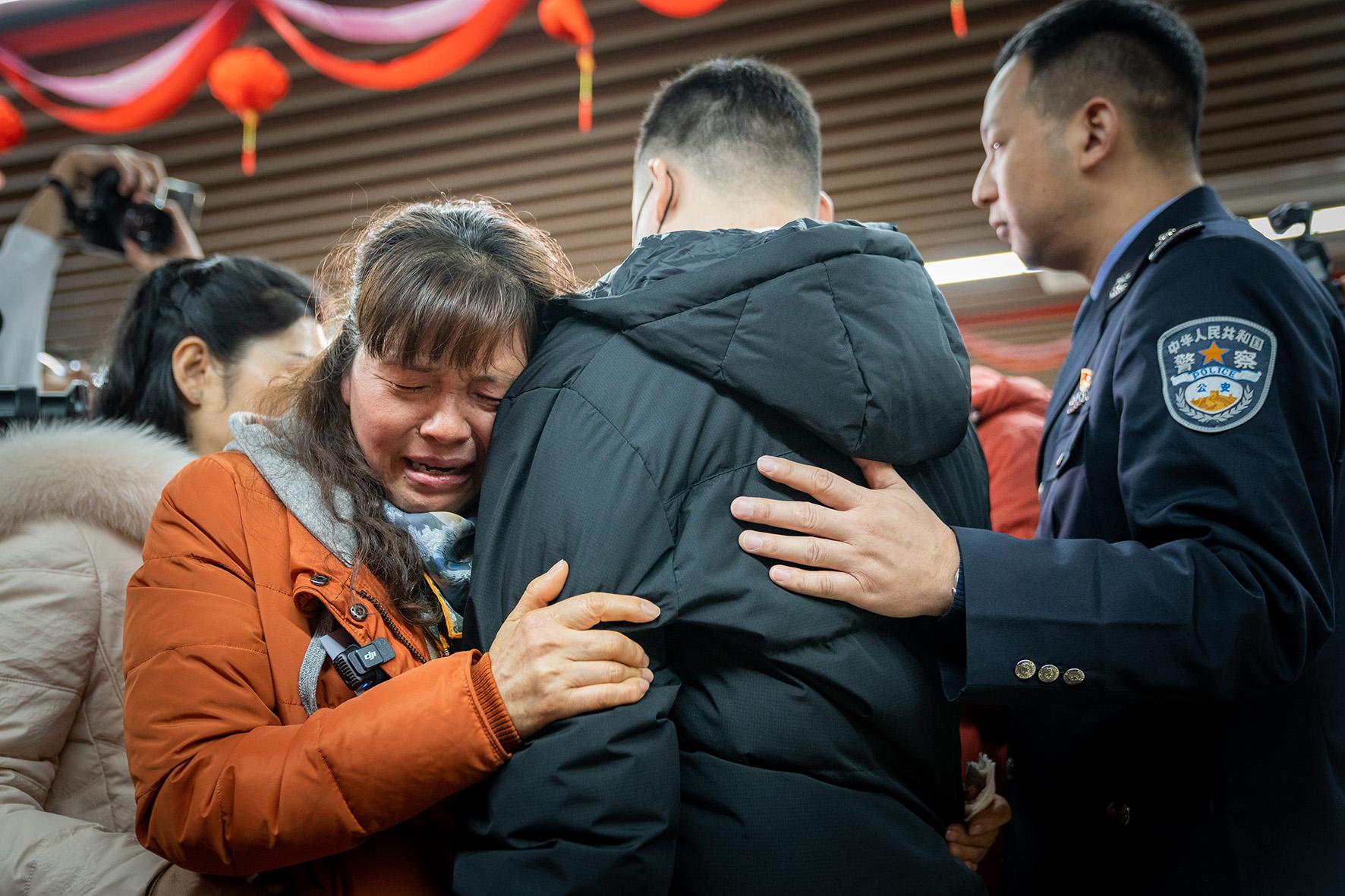 2月20日上午,四川省綿陽市公安局舉行的失蹤被拐兒童認(rèn)親活動(dòng)現(xiàn)場(chǎng),家住南充市南部縣的雷春蘭終于與日思夜想32年的兒子緊緊相擁在一起。團(tuán)聚后的一家人,對(duì)公安機(jī)關(guān)幫助連連致謝。