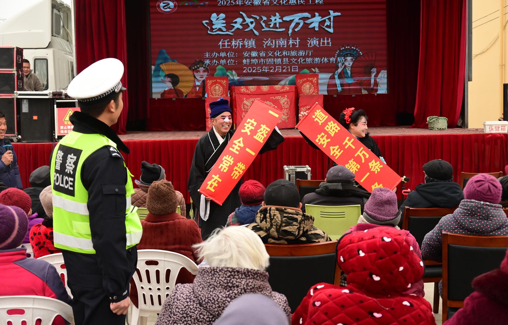 2月21日,安徽省蚌埠市固鎮(zhèn)縣公安局交管大隊(duì)組織警力隨“送戲進(jìn)萬(wàn)村”活動(dòng)走進(jìn)任橋鎮(zhèn)溝南村,開(kāi)展“美麗鄉(xiāng)村行”交通安全主題宣傳活動(dòng)。