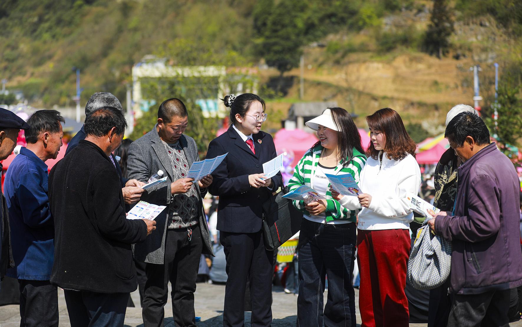 3月25日,貴州省黔西市人民檢察院組織干警走進一年一度的苗族花坡節(jié),給群眾普及民法典等法律知識,解答相關法律咨詢,提升群眾的防范意識和依法維權能力。