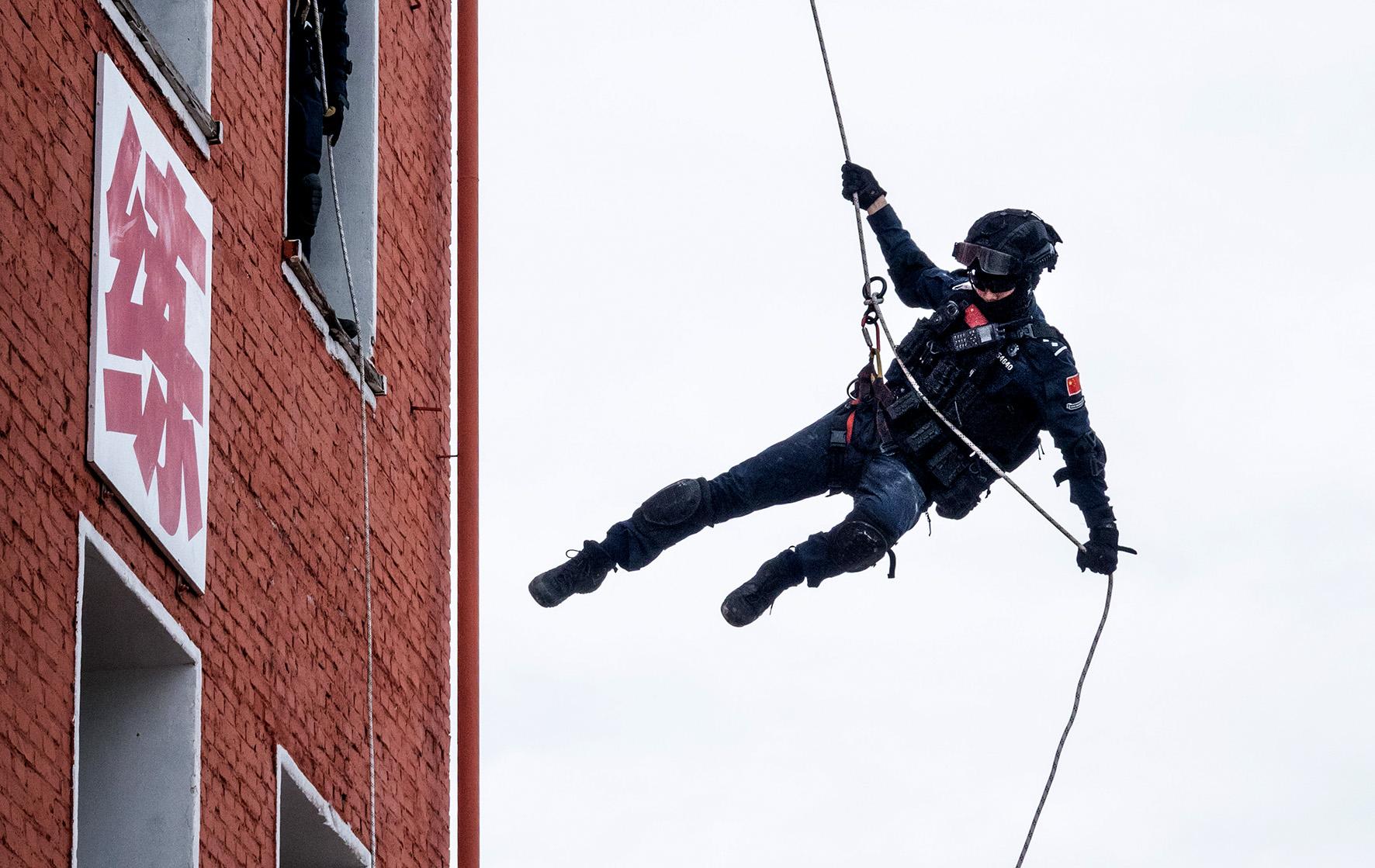 4月8日,內(nèi)蒙古出入境邊防檢查總站巴爾虎突擊隊(duì)在呼倫貝爾某訓(xùn)練場(chǎng)開(kāi)展立體化邊境封控演練,演練設(shè)置樓道搜索、密閉空間對(duì)抗等7個(gè)高難課目,從嚴(yán)從難、緊貼實(shí)戰(zhàn),錘煉隊(duì)員們綜合素質(zhì)。