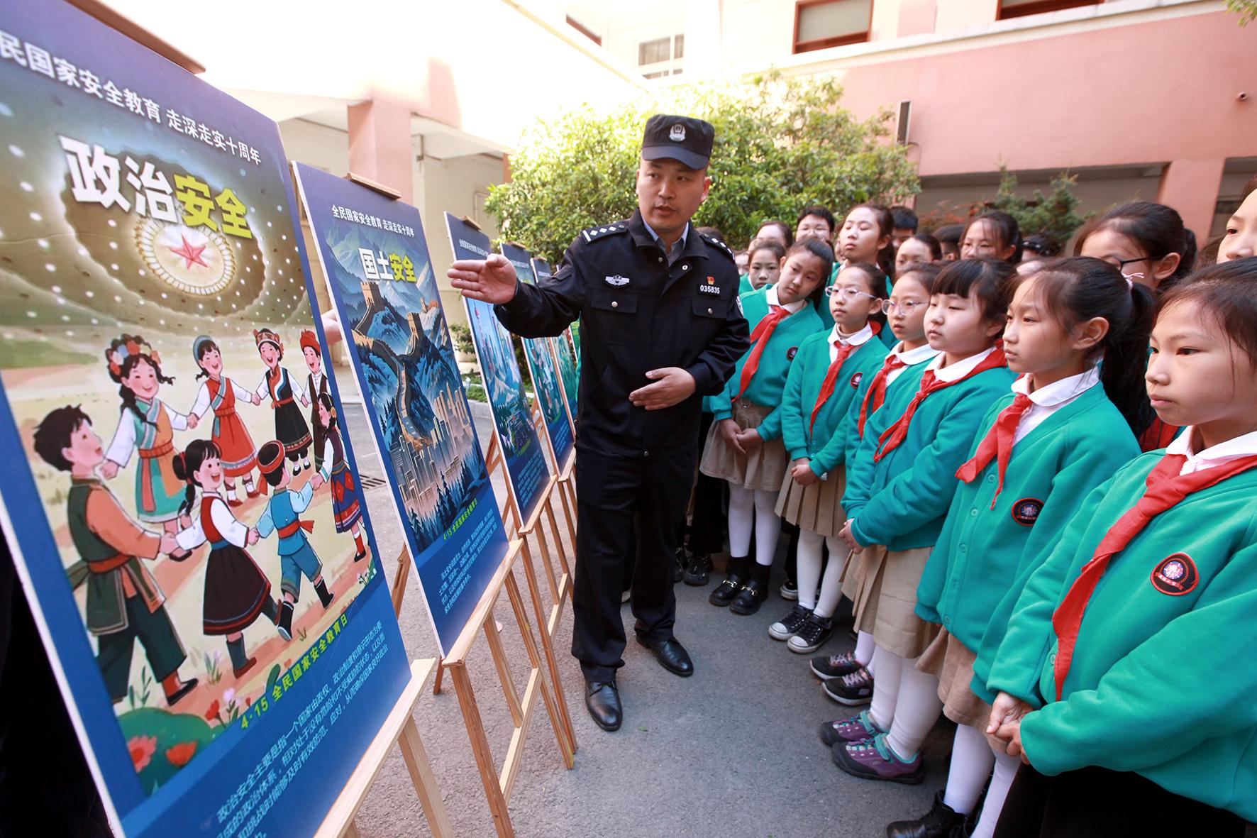 4月14日,安徽省馬鞍山市和縣公安局民警走進(jìn)歷陽鎮(zhèn)第一小學(xué)對(duì)小學(xué)生開展國家安全專題教育活動(dòng)。