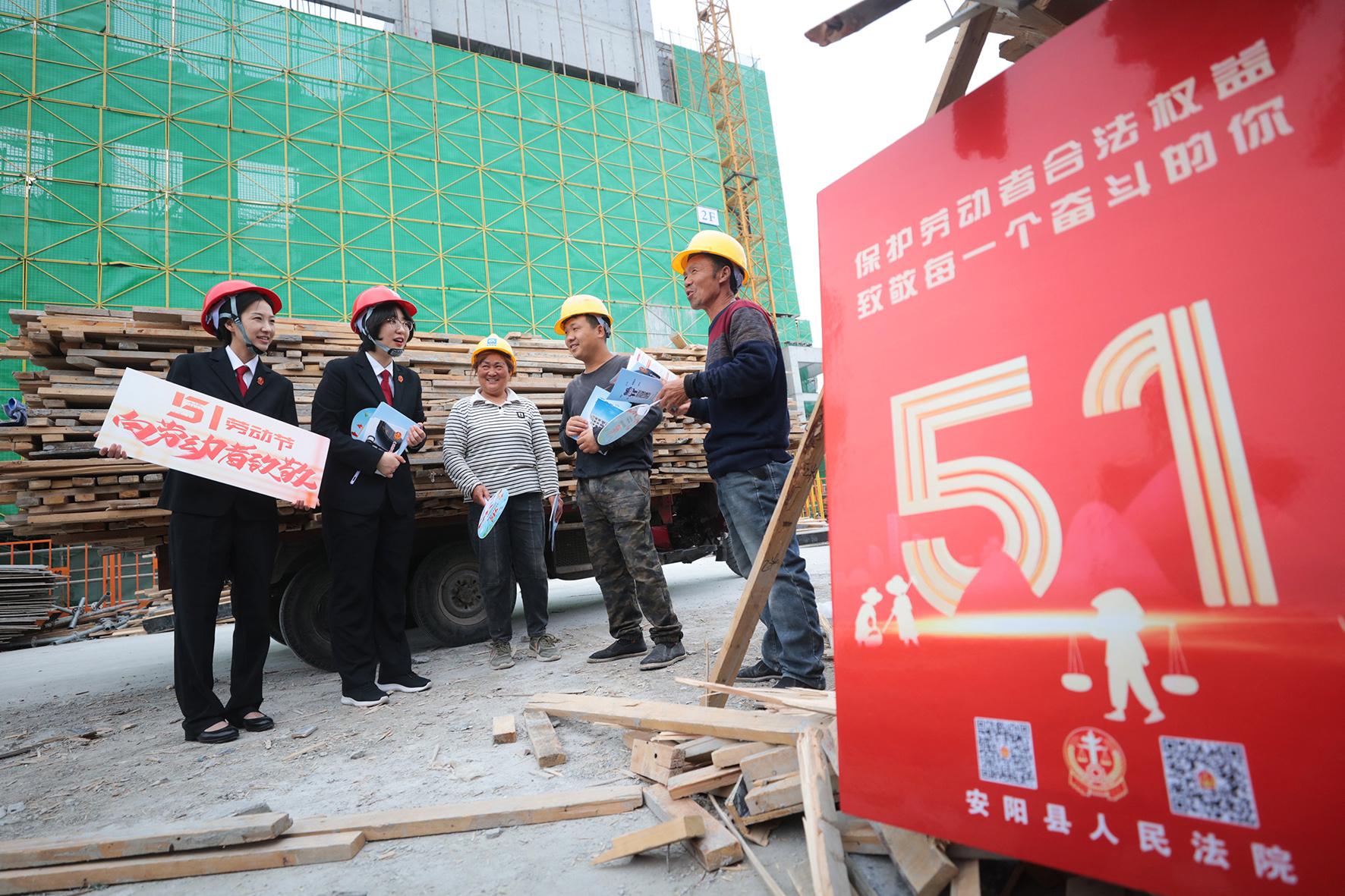4月21日,河南省安陽縣人民法院組織干警深入轄區(qū)建筑工地開展以“保護(hù)勞動者合法權(quán)益 致敬每一個奮斗的你”為主題的法治宣傳活動。