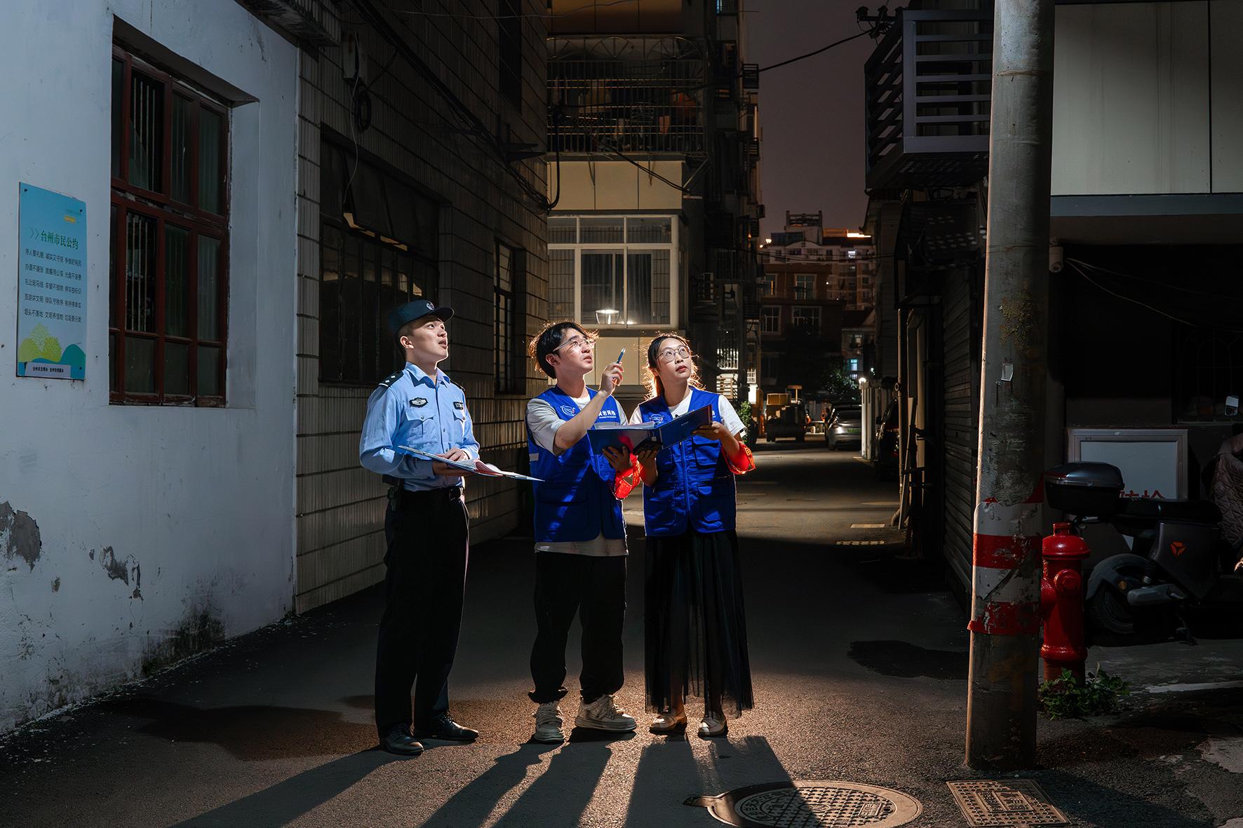5月6日深夜,浙江省臺州市公安局黃巖分局城西派出所民警和西城街道西江社區(qū)工作人員一起,在社區(qū)開展安全巡查,消除各類安全隱患。黃巖警方積極推行“夜間警務(wù)”,織密夜間安全網(wǎng),守護(hù)夏夜平安。