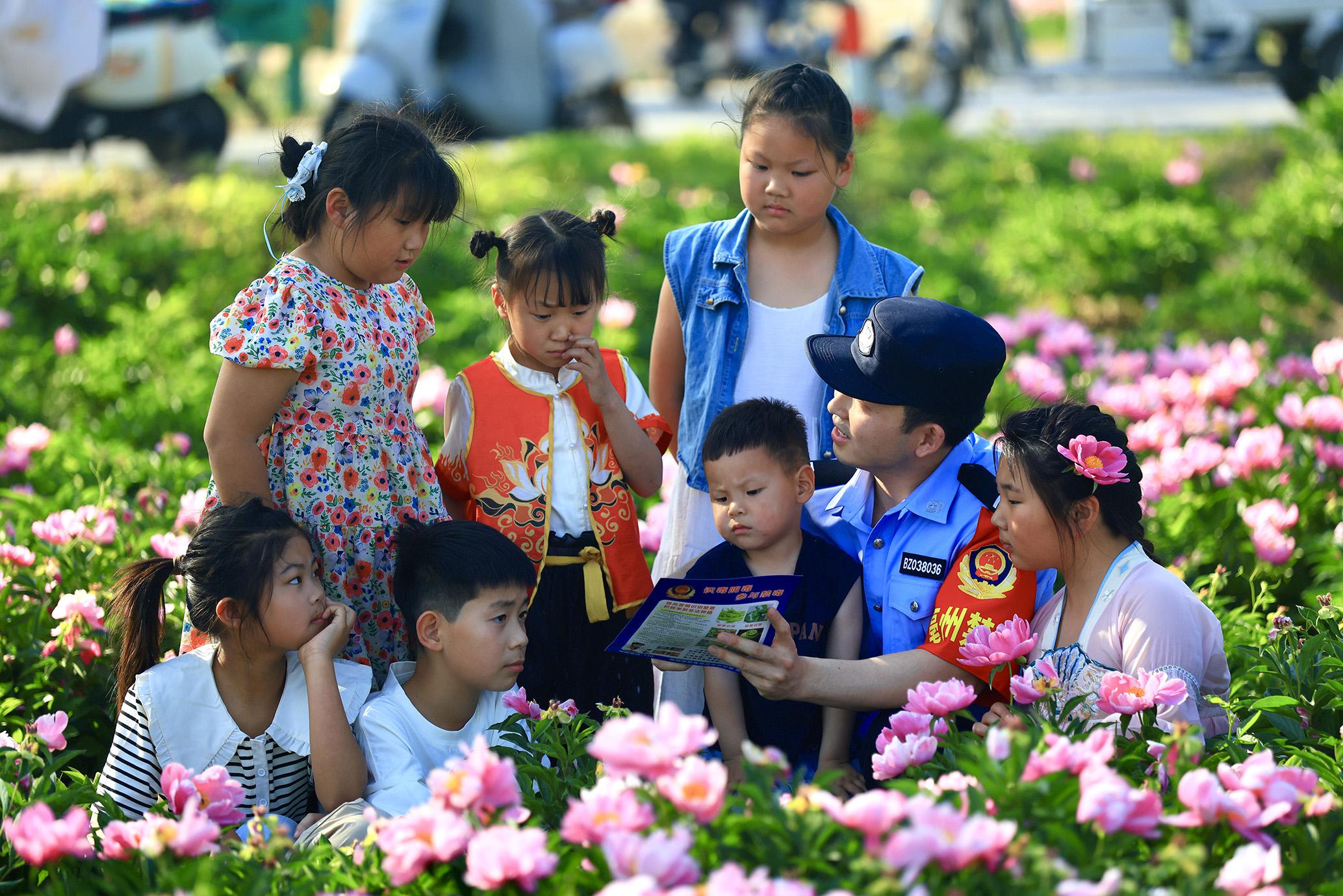5月1日,安徽省亳州市公安局禁毒支隊(duì)民警走進(jìn)芍藥花海大世界,開展禁毒宣傳活動(dòng)。