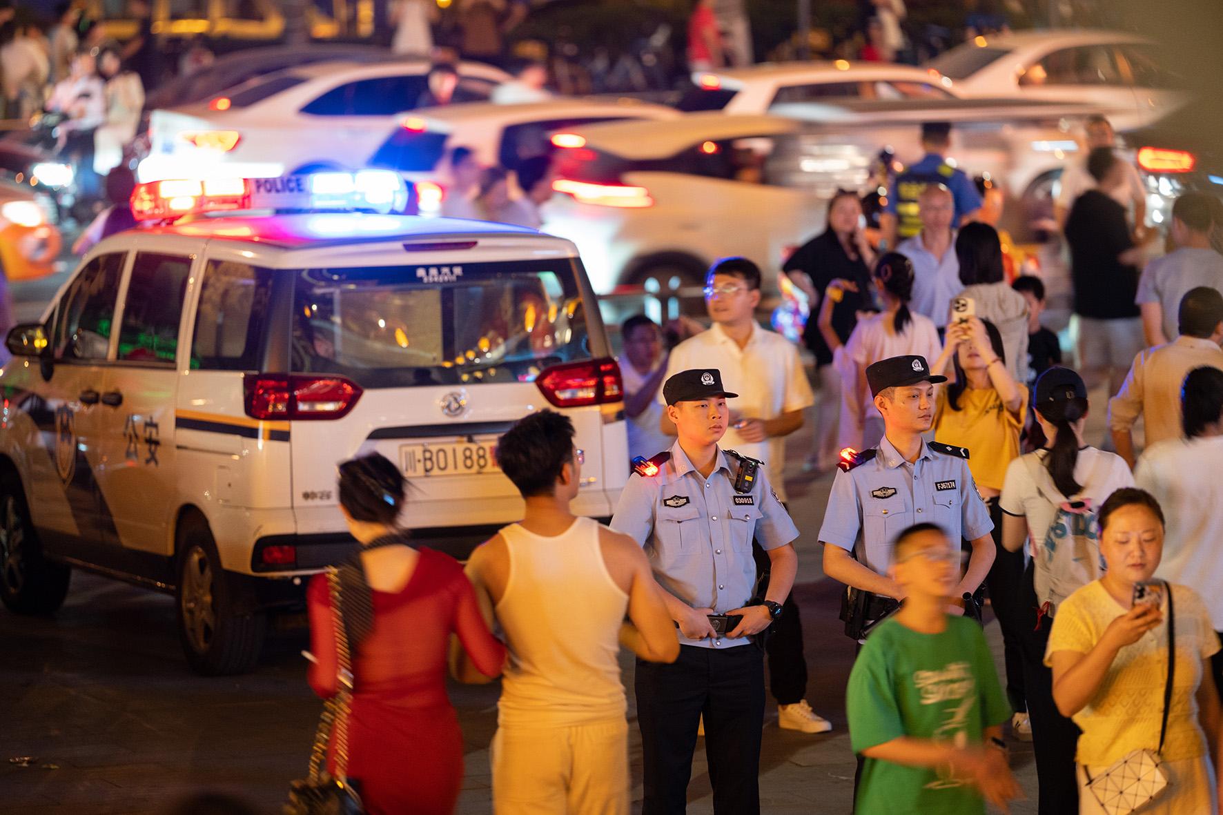5月5日,山東省棗莊市公安局臺(tái)兒莊分局民輔警在臺(tái)兒莊古城執(zhí)勤。