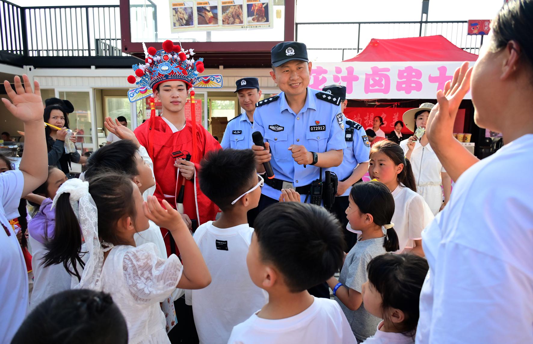 5月4日,安徽省馬鞍山市和縣公安局民警在“龍蝦啤酒音樂美食季”現(xiàn)場(chǎng)為游客提供安全出行咨詢服務(wù)。
