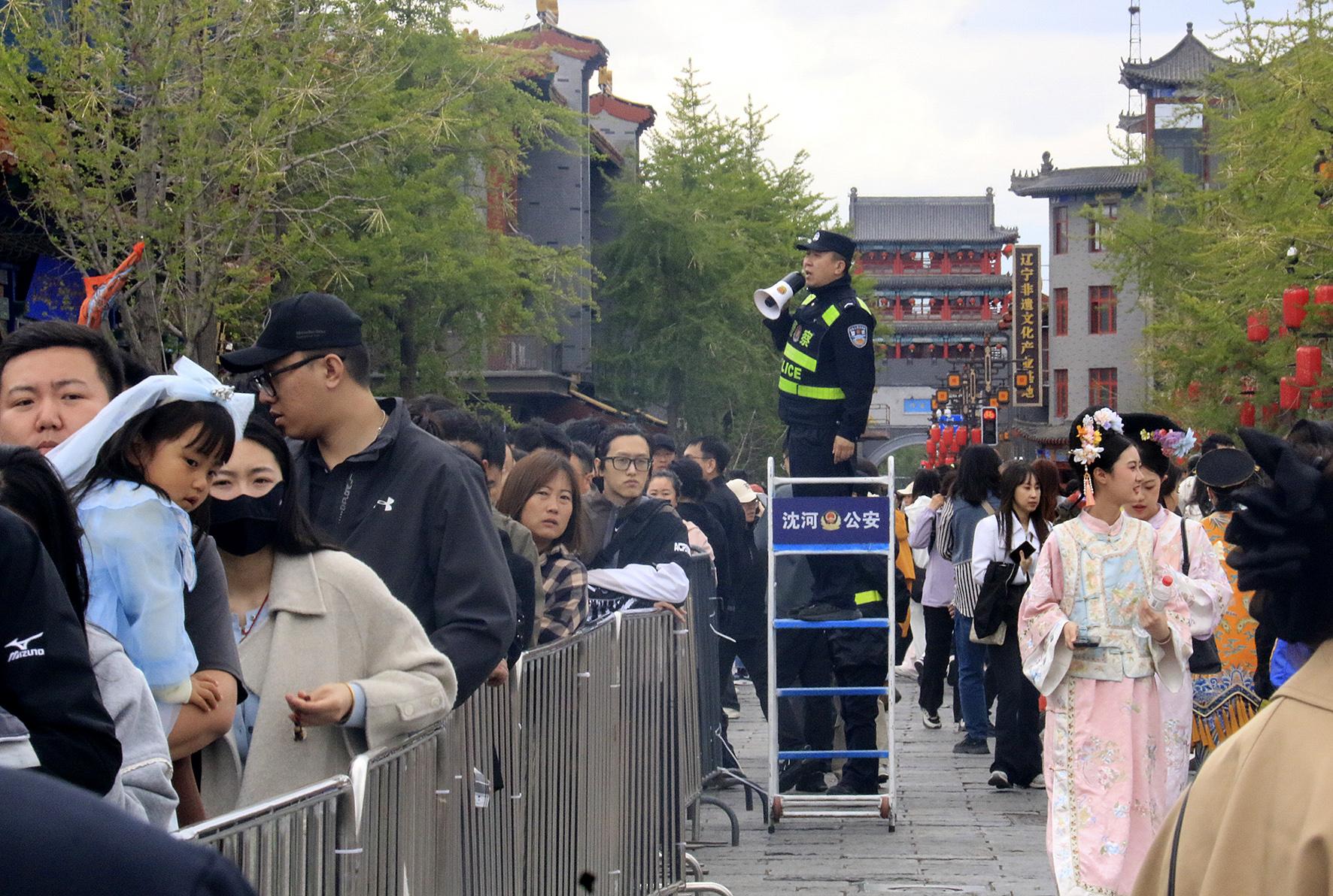5月3日,遼寧省沈陽(yáng)市公安局沈河分局民輔警在沈陽(yáng)故宮執(zhí)勤。