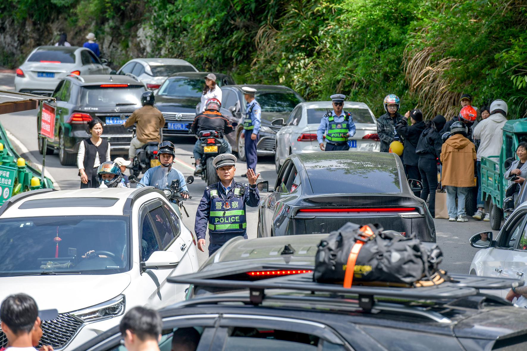5月1日,安徽涇縣“皖南川藏線”迎來客流高峰。涇縣公安局全警動(dòng)員,采取“機(jī)動(dòng)+定點(diǎn)”的工作方式,全力保障道路通暢,為游客打造安全有序的出行環(huán)境。