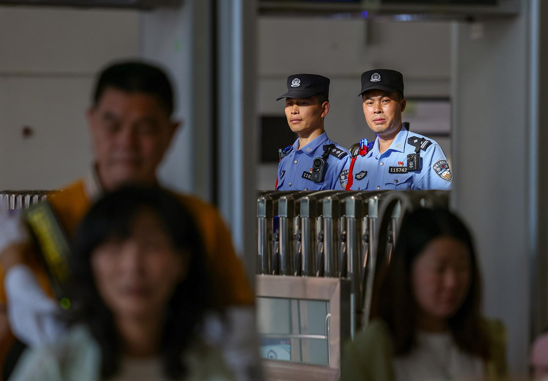 5月5日,安徽省舒城縣高鐵東站迎來“五一”假期返程高峰。舒城縣公安局千人橋派出所高鐵東站警務(wù)站民警輔警在入站口平臺(tái)疏導(dǎo)交通、服務(wù)群眾,確保返程旅客平安出行。