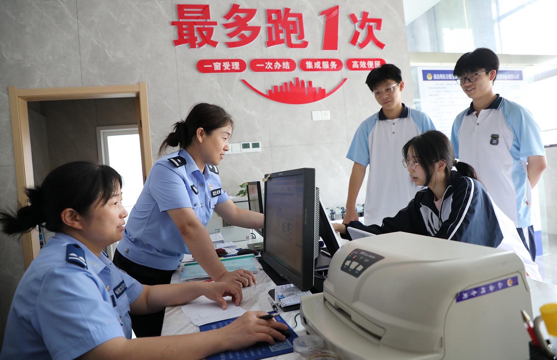 5月20日,江西省九江市公安局濂溪分局劉家塘派出所為考生開設(shè)辦證“綠色通道”,戶籍窗口民警周末和午休時間一律在崗,采取延時、錯時、預(yù)約等方式為學生辦證提供24小時服務(wù)。