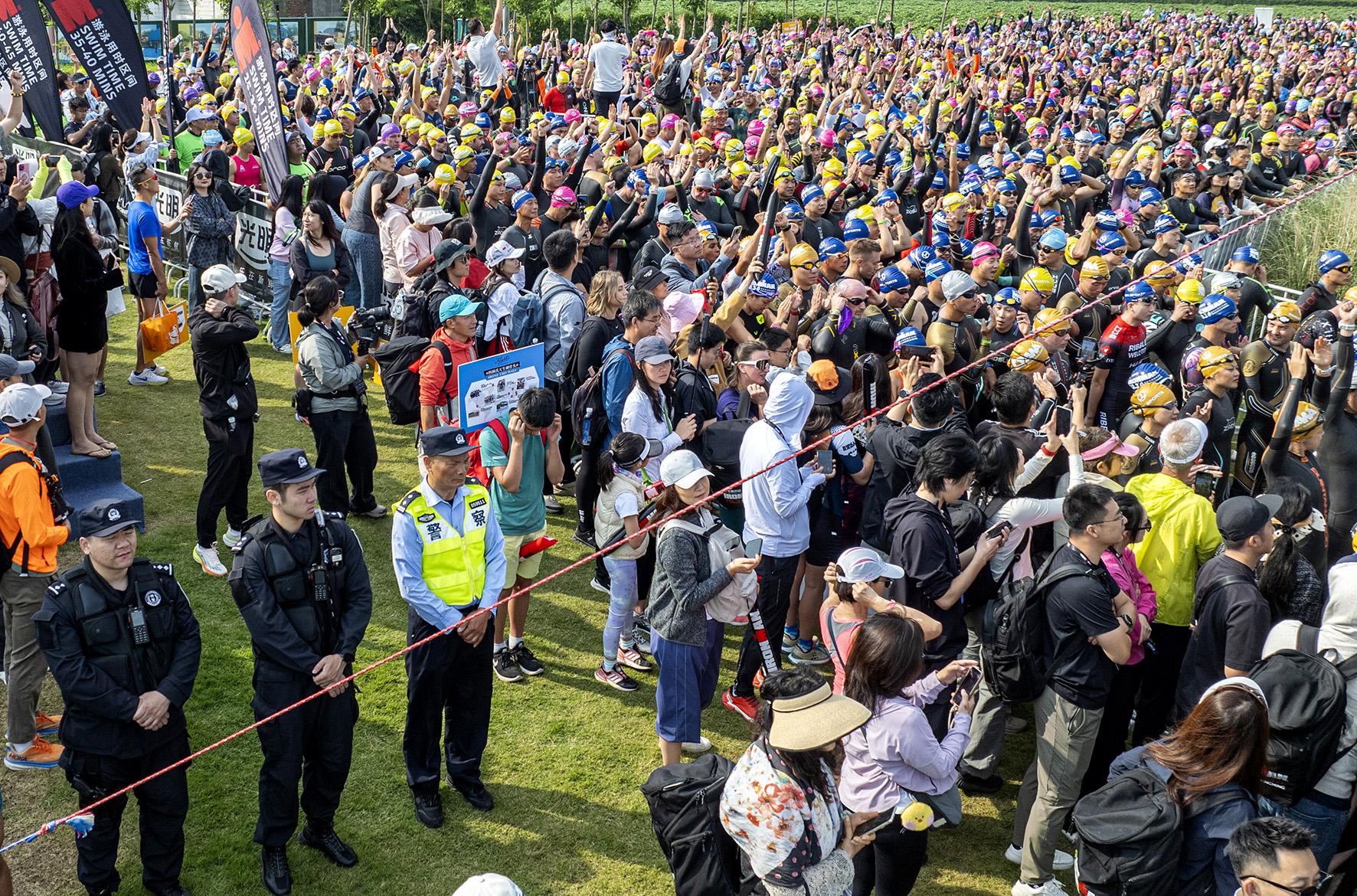 5月25日,上海市公安局崇明分局民警在鐵人三項(xiàng)賽上海站比賽現(xiàn)場執(zhí)勤。