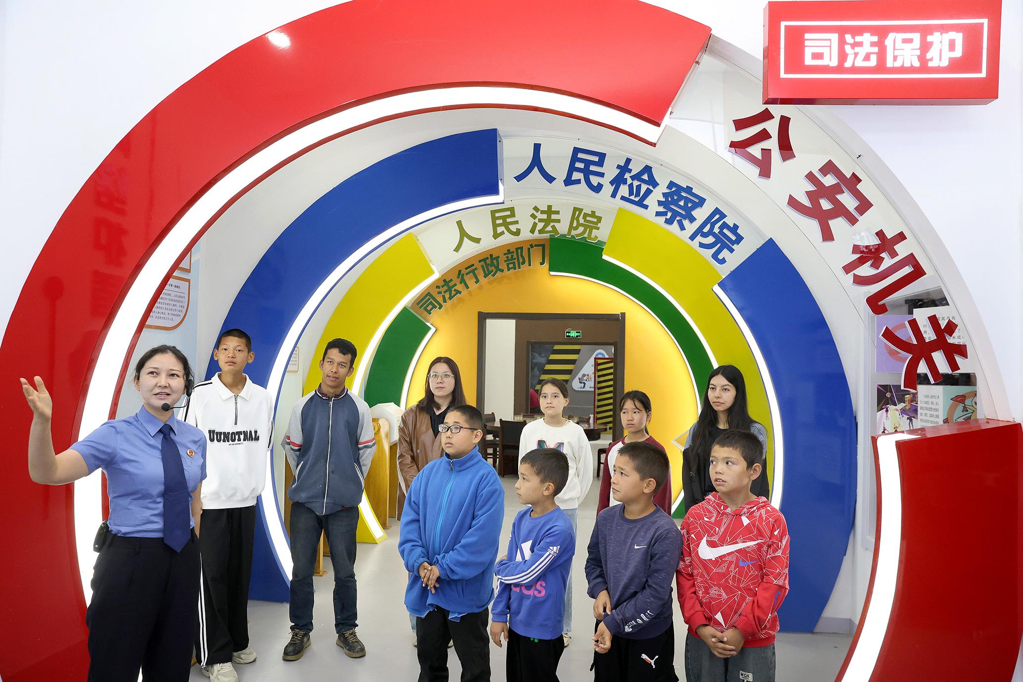5月24日,新疆伊犁哈薩克自治州鞏留縣人民檢察院檢察官潔茉斯·別坎利用周末時(shí)間,在青少年法治教育基地開(kāi)展法治宣傳。