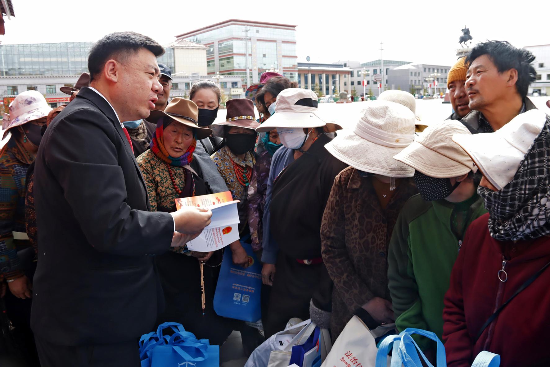 5月29日,青海省果洛州瑪沁縣人民法院法官在人民廣場開展“民法典進社區(qū) 權(quán)益保障零距離”普法宣傳活動。