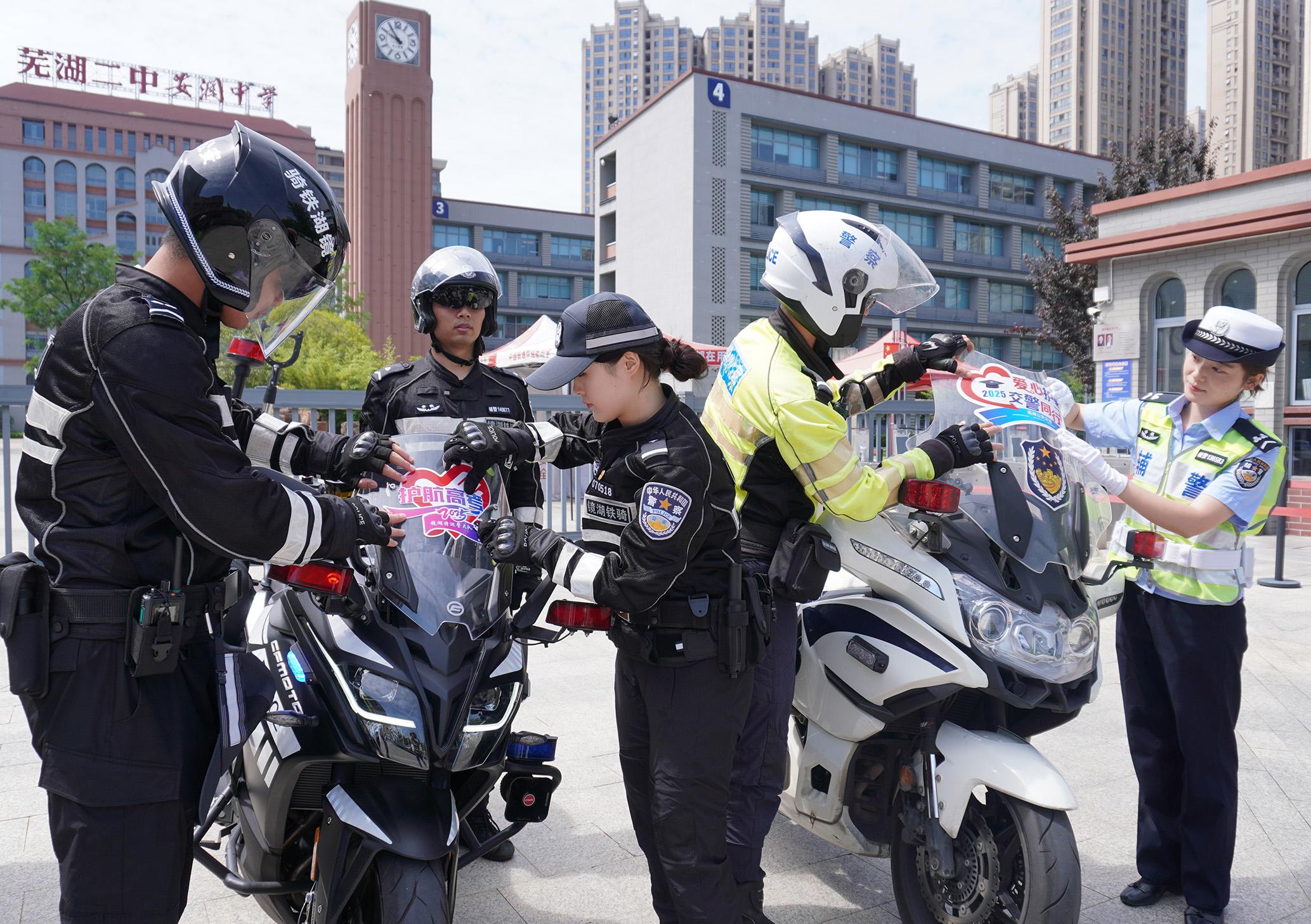6月5日,安徽省蕪湖市公安局鏡湖分局特巡警大隊聯(lián)合鏡湖交警大隊開展2025年“愛心護考”啟動儀式,10輛“愛心送考鐵騎”整裝待發(fā)。