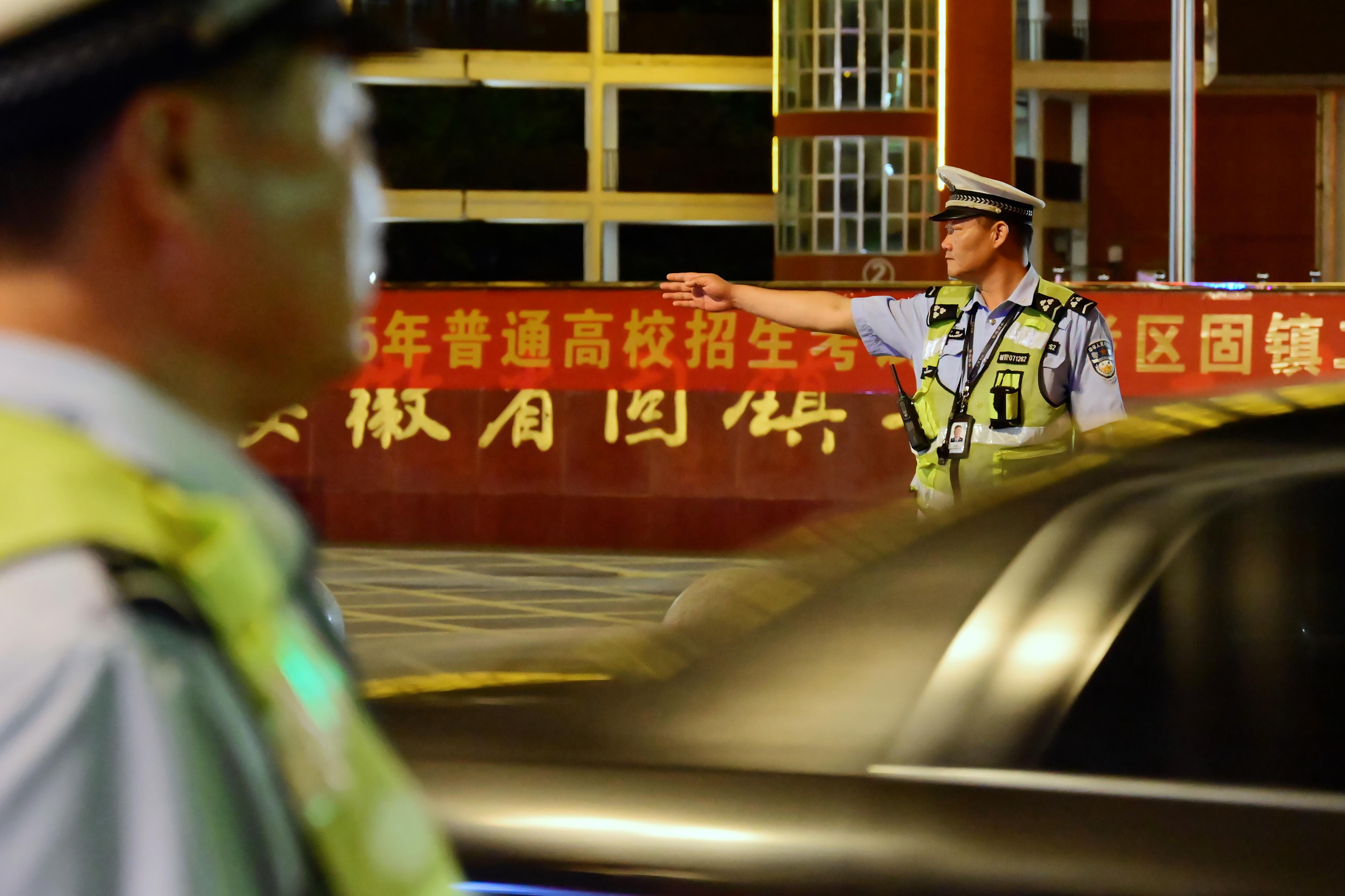 6月4日,安徽省固鎮(zhèn)縣公安局交管大隊輔警在高考考點執(zhí)勤。