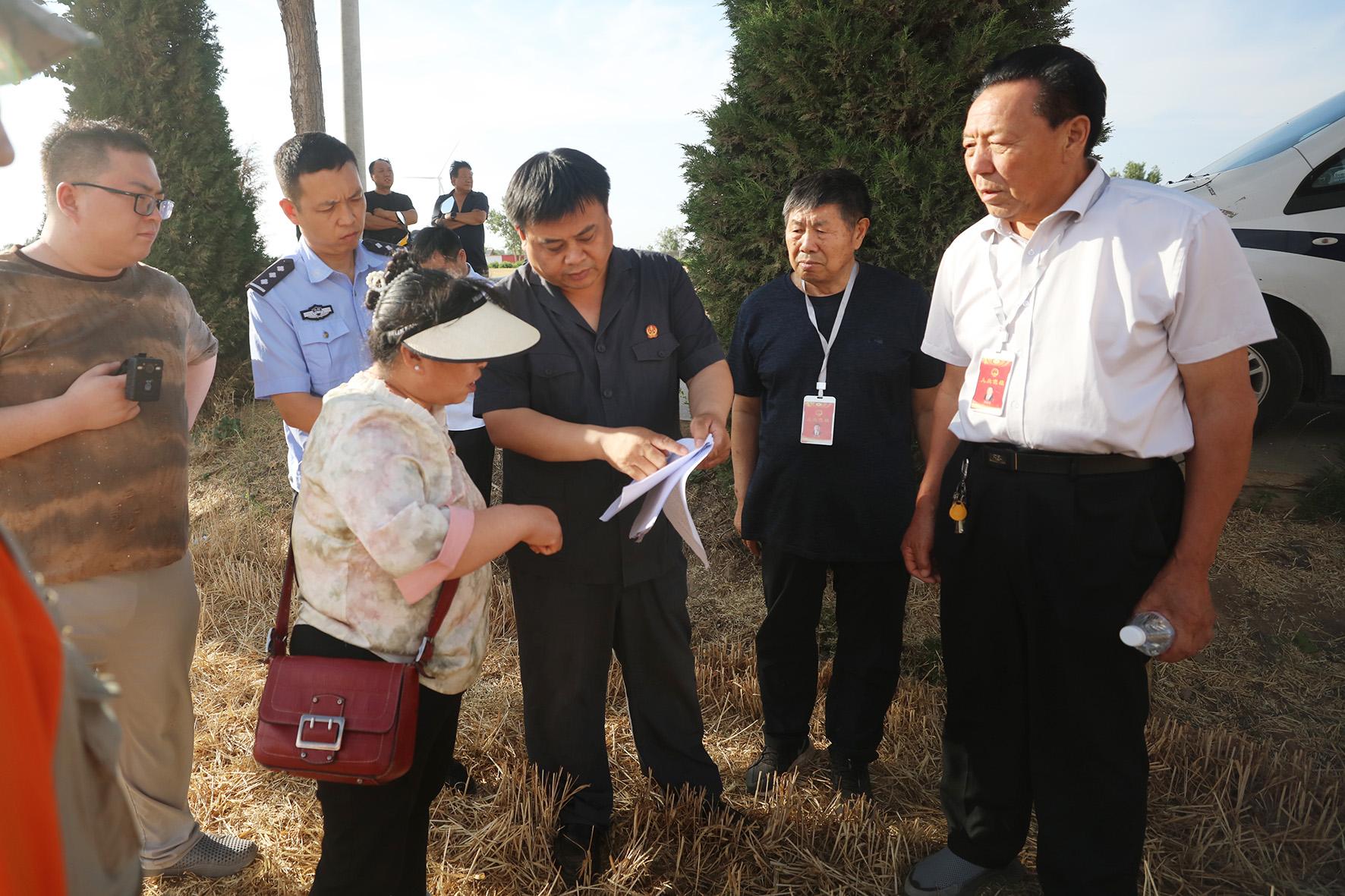 6月3日,河南省安陽縣人民法院執(zhí)行局法官一行來到轄區(qū)北郭鄉(xiāng),對(duì)一起親兄弟之間土地承包經(jīng)營(yíng)權(quán)糾紛案進(jìn)行強(qiáng)制執(zhí)行。在安陽市、縣兩級(jí)人大代表現(xiàn)場(chǎng)監(jiān)督見證下,對(duì)涉案土地劃定了新的界線,最終案件得到解決。