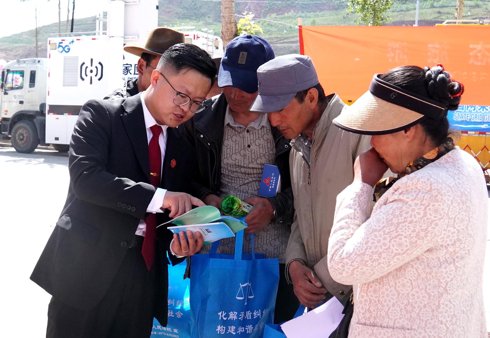 7月2日,青海省西寧市湟源縣人民法院法官在人民廣場(chǎng)開展“普法進(jìn)社區(qū)、進(jìn)鄉(xiāng)村”主題活動(dòng)。